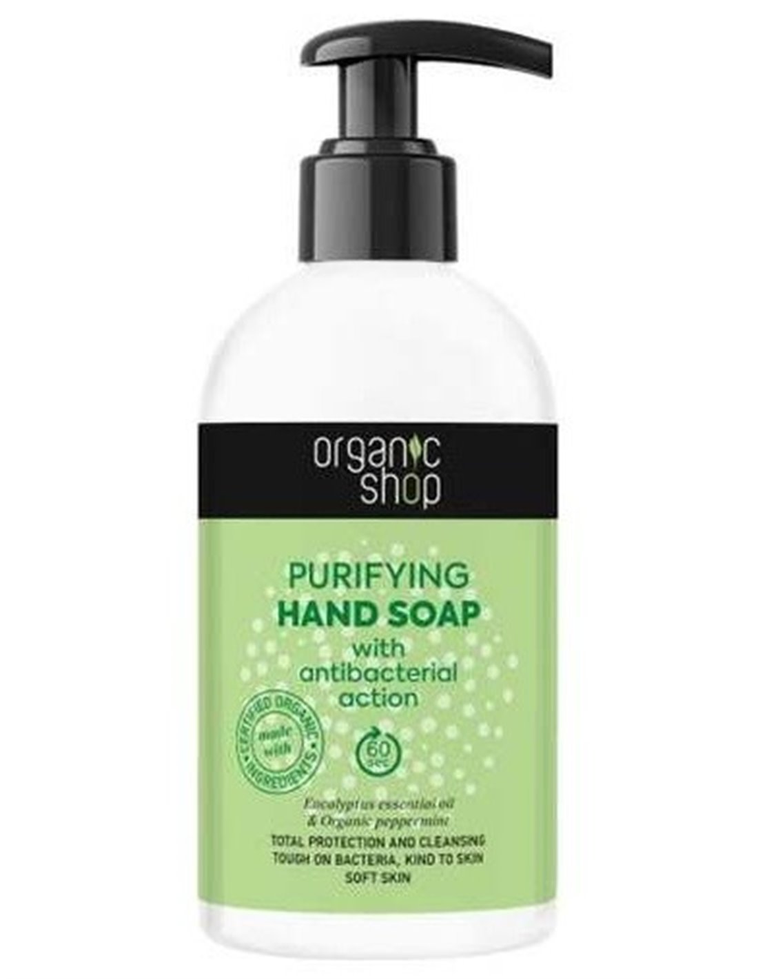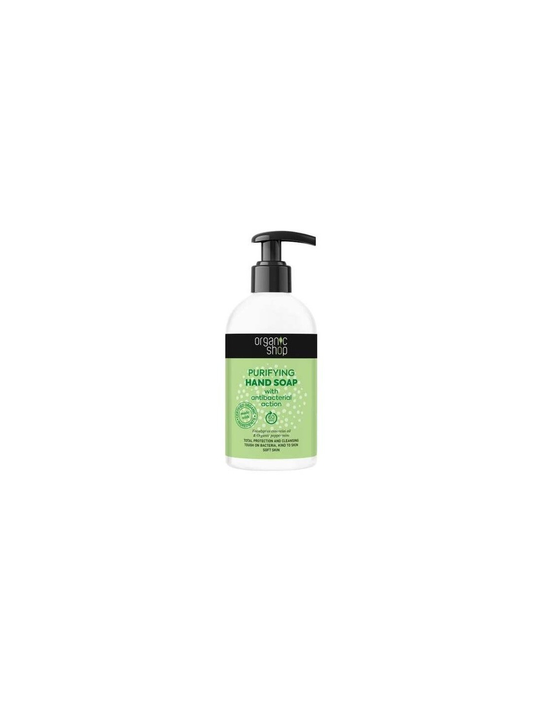 Protección y limpieza total. El jabón de manos purificante es un limpiador de eficaz acción higienizante, con unos ingredientes que aportan frescura e hidratación: el aceite esencial de eucalipto es un tratamiento natural con propiedades calmantes y purificantes. Ayuda a combatir los gérmenes. El extracto orgánico de menta piperita refresca e hidrata eficazmente la piel.