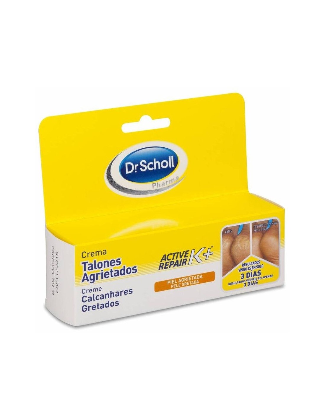 SCHOLLRepara los talones para unos resultados visibles en 1 día. Contiene 25% Urea y Keratina Active Repair K+, un ingrediente clínicamente probado para ayudar al proceso natural de recuperación del cuerpo ayudando a construir un soporte natural e impulsar la reparación de la piel. Se absorbe rápidamente. Sin sensación pegajosa y sin fragancia.