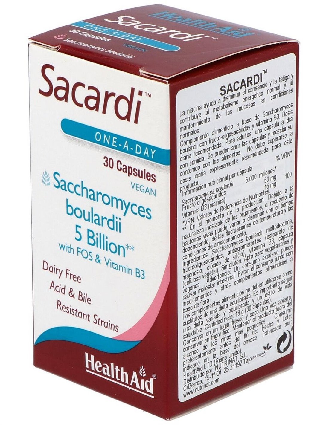 Sacardi (Saccharomyces Boulardii) 30Vcaps. de Health Aid es un suplemento probiótico para personas que buscan apoyar la salud digestiva, formulado con Saccharomyces Boulardii para contribuir al equilibrio intestinal.