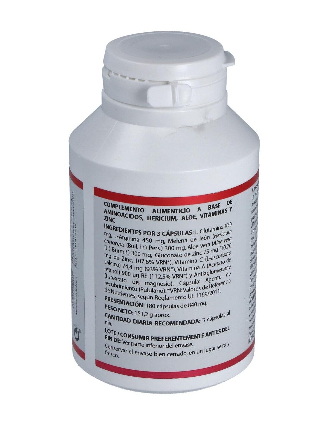 L-Arginina: Ayuda a mantener en buen estado la pared intestinal, porque potencia la síntesis de colágeno entre otras funciones, además ayuda a la cicatrización y normalización de las mucosas, heridas o quemaduras.