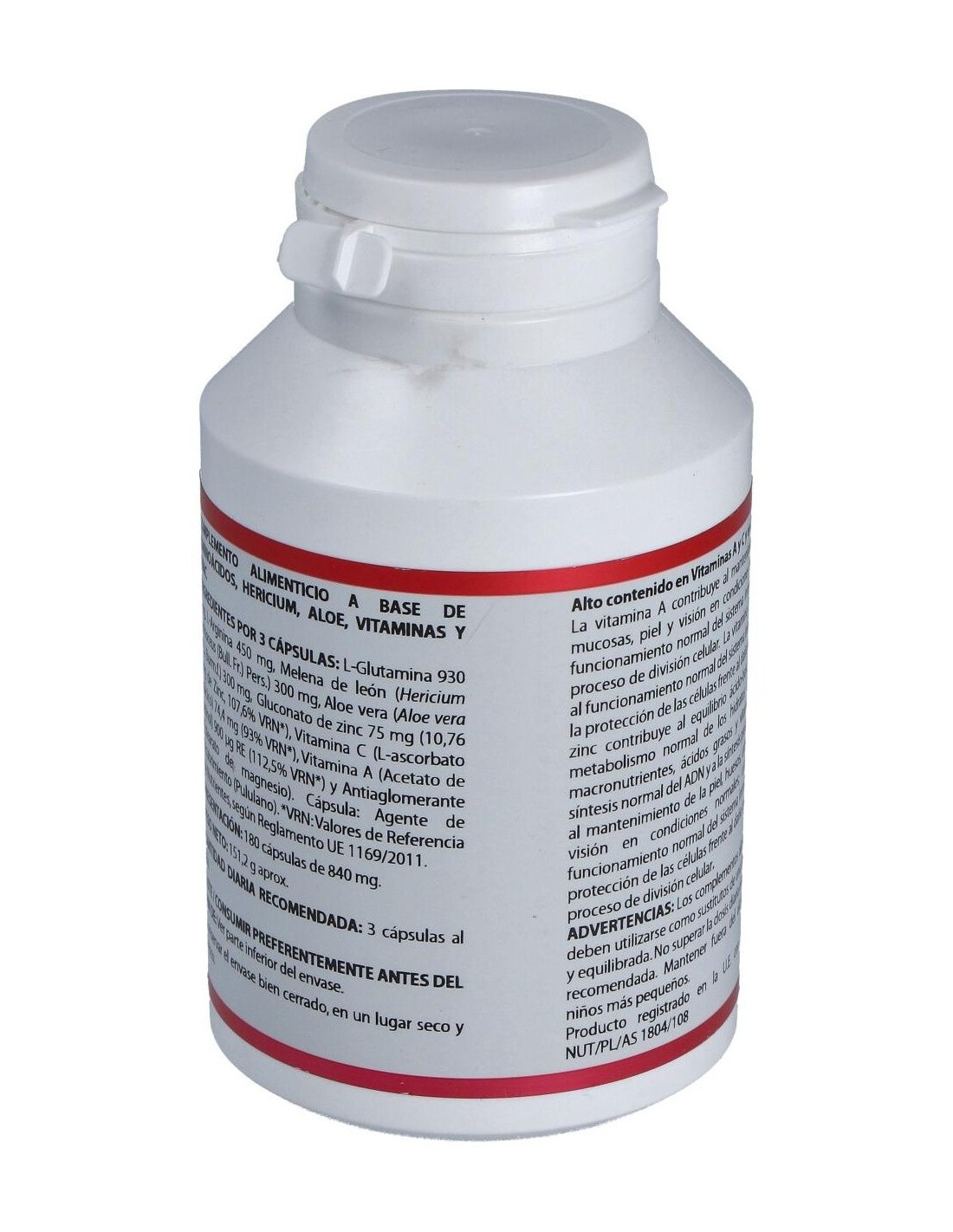 L-Glutamina: Es un importante componente del tejido conectivo de la pared intestinal. Previene la atrofia de la mucosa intestinal y reduce su permeabilidad exagerada. Parece ser que la deficiencia de la misma está asociada a la enfermedad de Crohn, colon irritable o inflamación del colon. El exceso de permeabilidad intestinal está relacionado con varias enfermedades, el síndrome de su propio nombre, las alergias alimentarias, candidiasis, infecciones, desnutrición, quimioterapia. Es antiulcerosa por esta acción protectora de la mucosa digestiva y activa la curación de heridas o quemaduras.