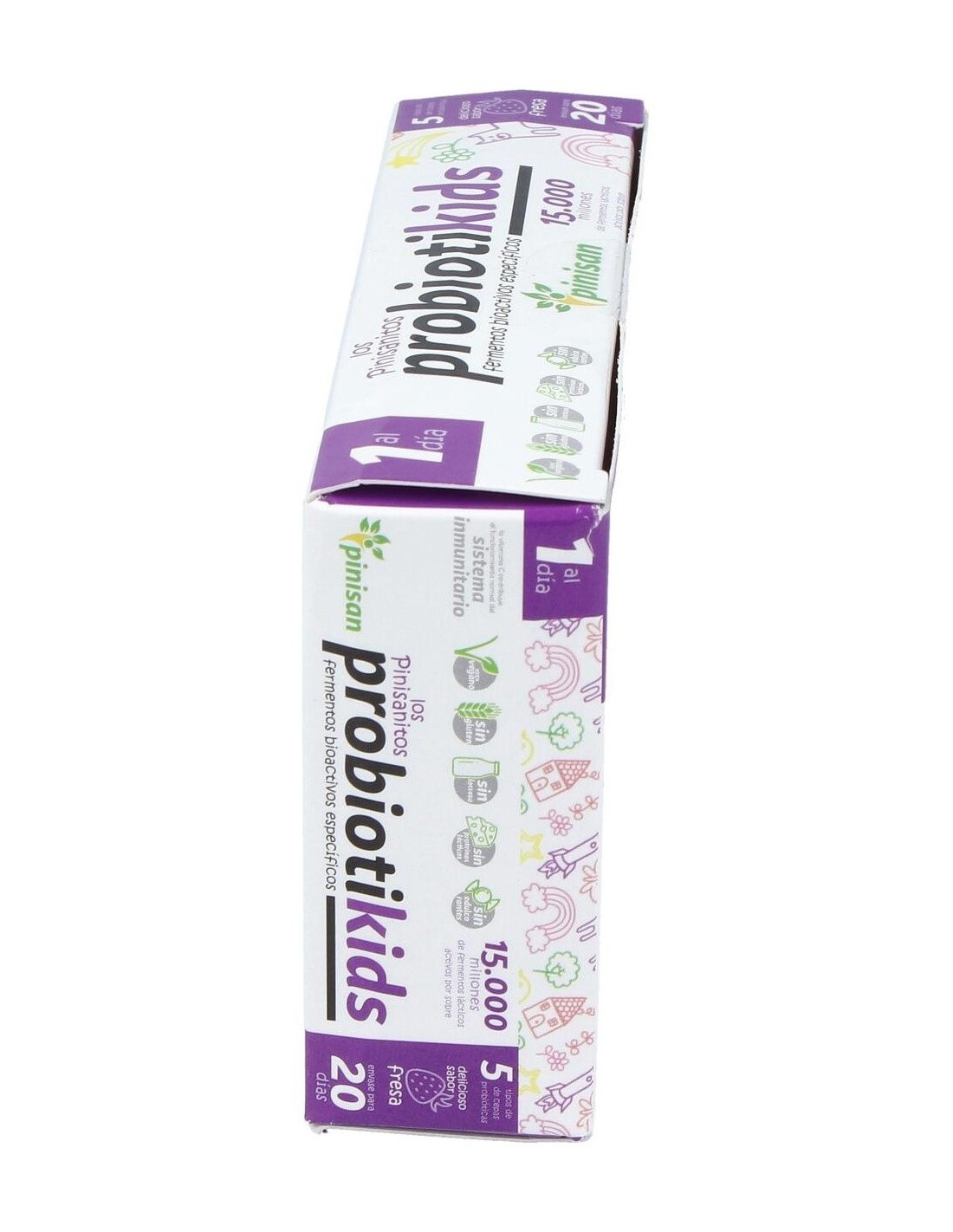 Contiene un cañón probiótico de bacterias vivas con una alta actividad garantizada, FOS (fructooligosacáridos) de alta solubilidad y vitamina C que contribuyen al normal mantenimiento del sistema inmune y digestivo. Con sabor a fresa. Producto vegano.