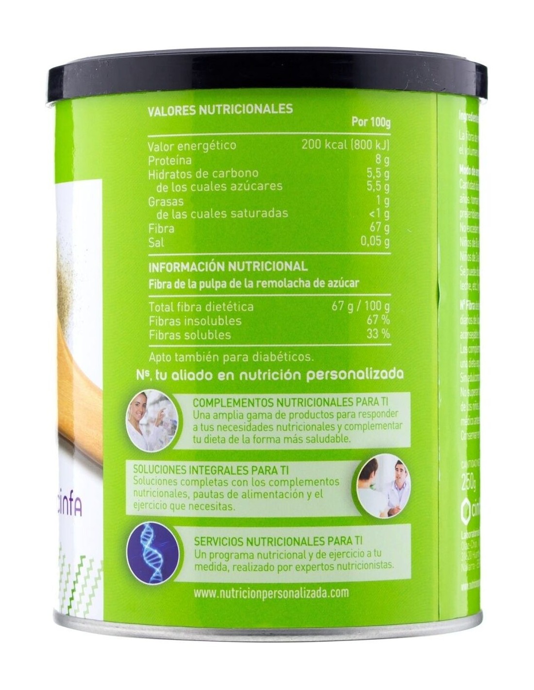 Complemento alimenticio con alta cantidad de fibra (67%) y con un balance adecuado de fibra soluble vs insoluble que sigue las recomendaciones de las sociedades científicas, recomendado para aquellas personas que quieran mantener una función intestinal normal. Apto para adultos y niños a partir de los 3 años.