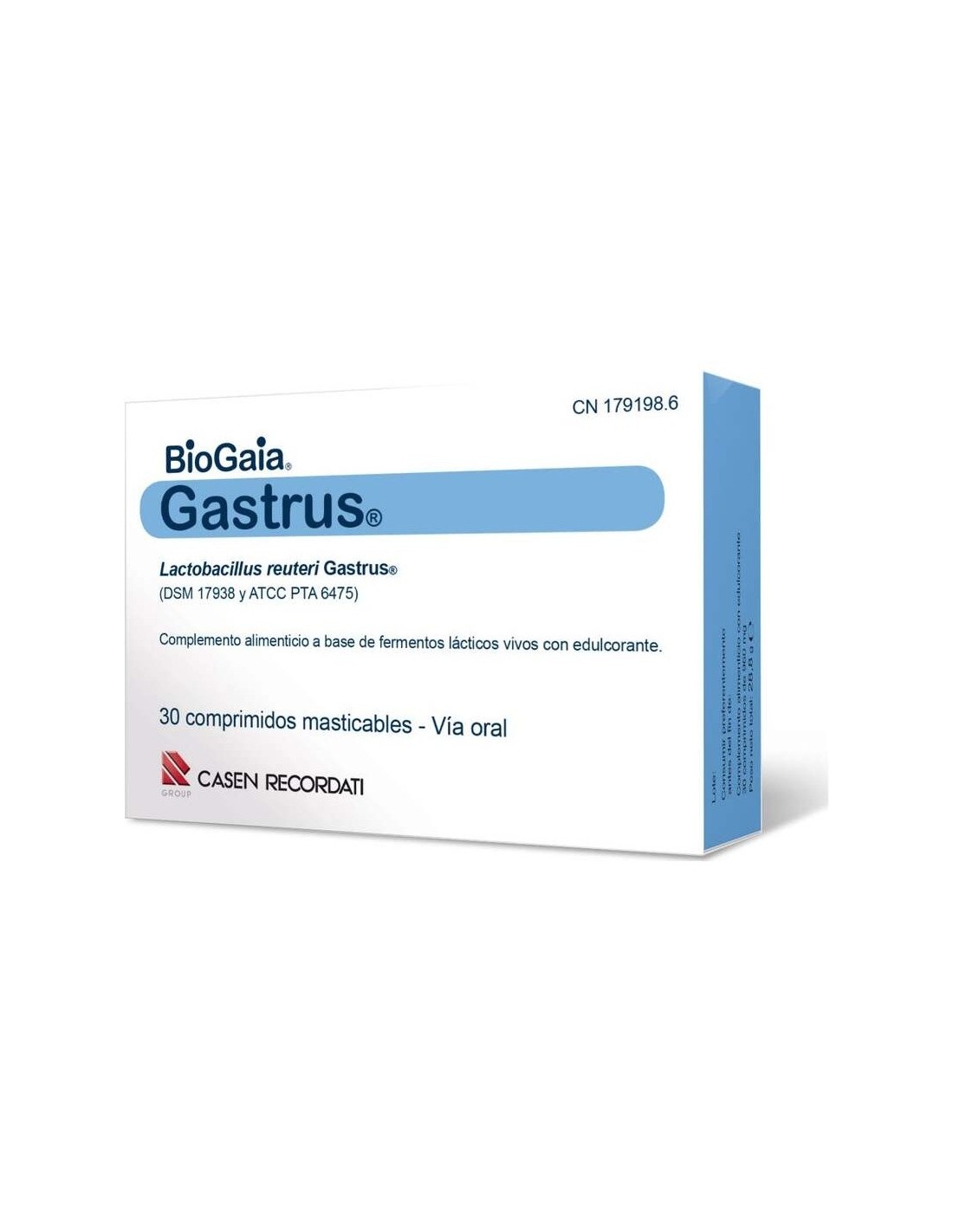 Complemento alimenticio a base de fermentos lácticos vivos procedentes de dos cepas, Lactobacillus reuteri Gastrus® (Lactobacillus reuteri DSM 17938 y Lactobacillus reuteri ATCC PTA 6475), los cuales contribuyen a mantener el sistema digestivo en condiciones normales.