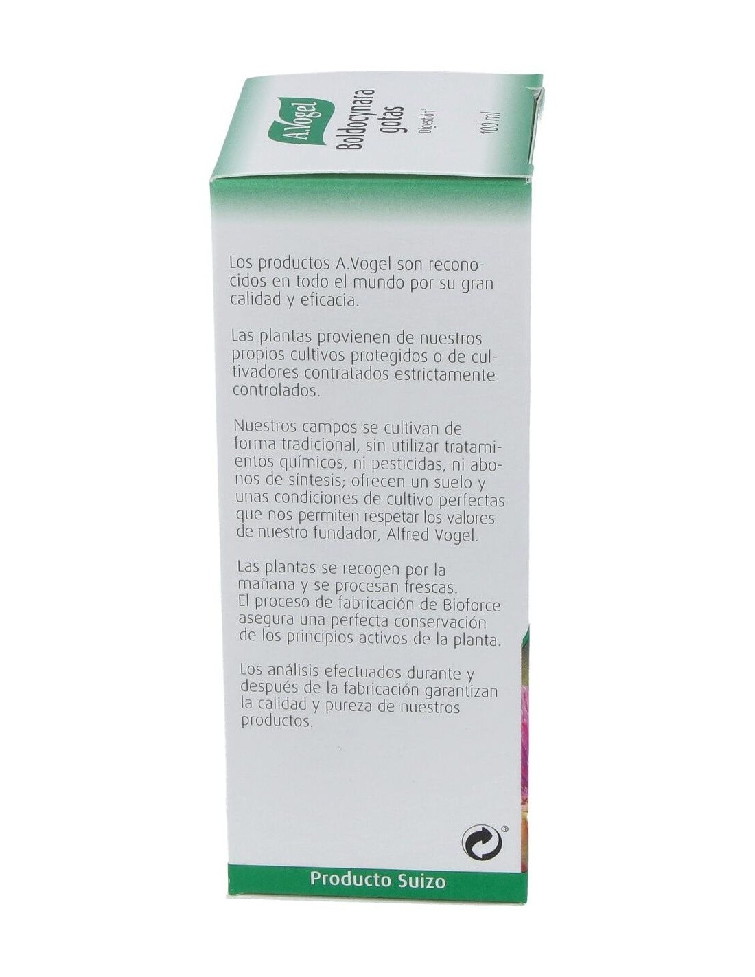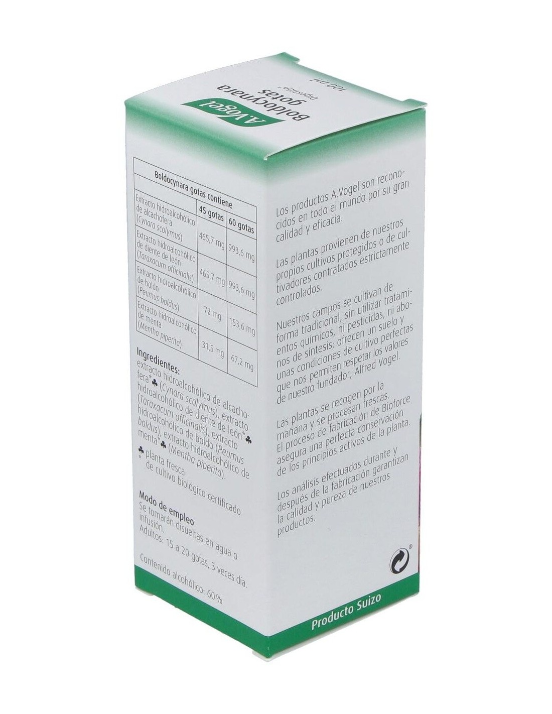 Boldocynara Gotas Ml 100 de A.Vogel es un complemento líquido diseñado para personas que buscan apoyar su bienestar digestivo de manera natural. Su formulación combina extractos botánicos que pueden integrarse fácilmente en la rutina diaria.