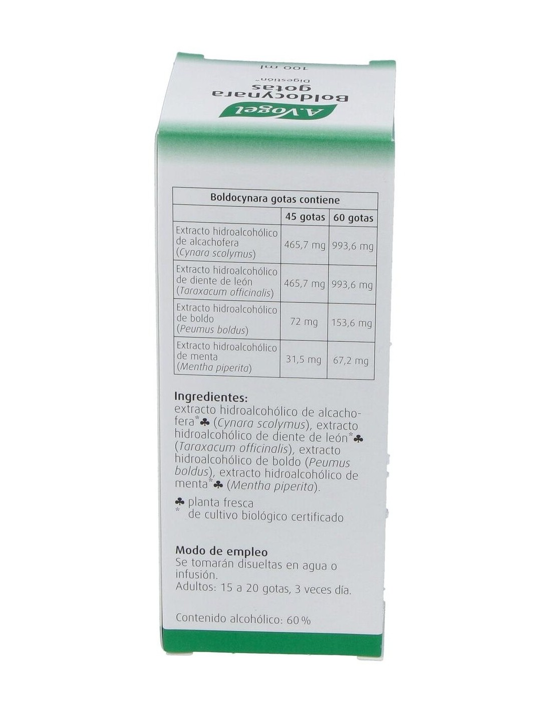 Boldocynara Gotas Ml 100 de A.Vogel es un complemento natural para adultos que apoya la función digestiva y hepática, formulado con extractos de boldo y alcachofa para favorecer el bienestar digestivo.
