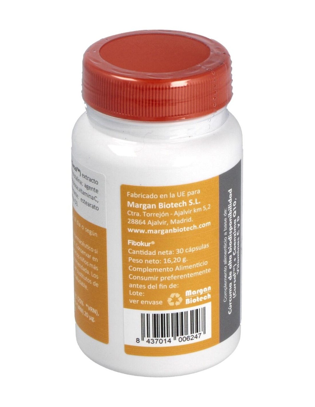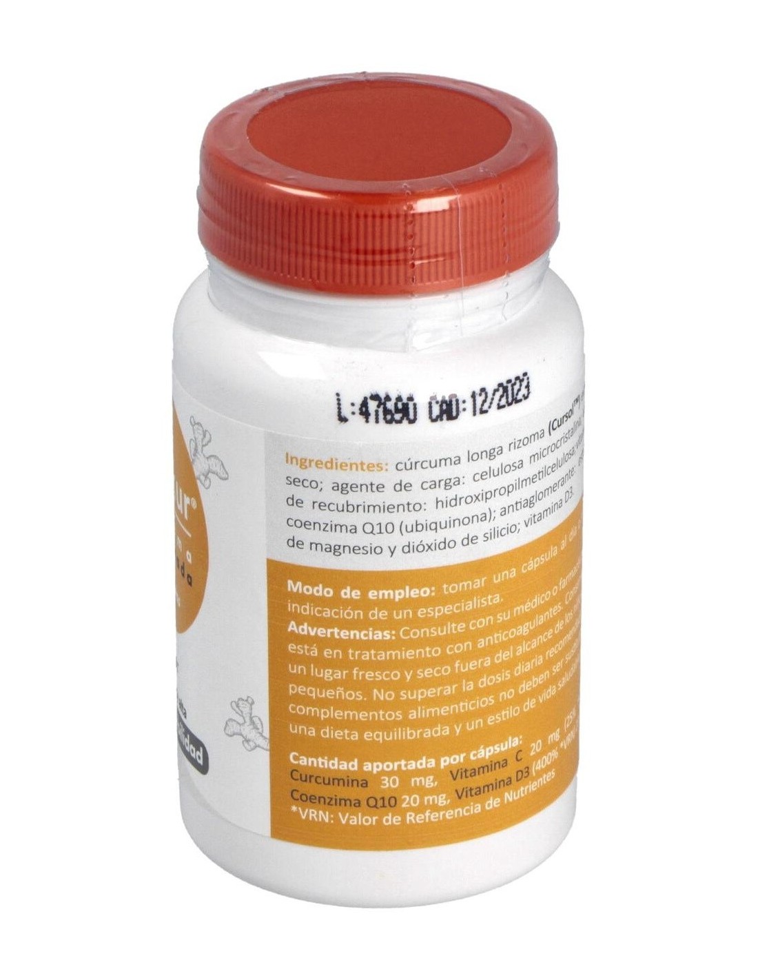 Curcuma longa (Cursol) extracto seco,agente de recubrimiento: gelatina; agente de carga: maltodextrina; vitamina C (ácido L-ascórbico), coenzima Q10 (ubidecarenona), anti-aglomerante: estearato de magnesio y dióxido de silicio; vitamina D3 (colecalciferol).