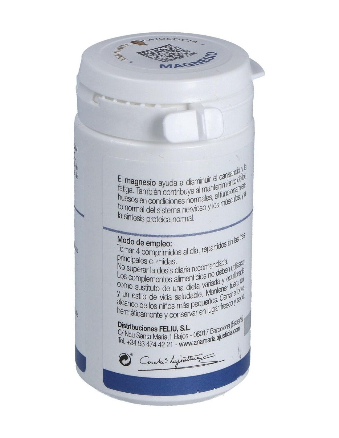 Composición por comprimido:71 mg de ión magnesio (cloruro de magnesio hexahidratado y carbonato de magnesio).Modo de empleo:Tomar 5 comprimidos al día con las comidas.Presentación:Bote de 147 comprimidos.