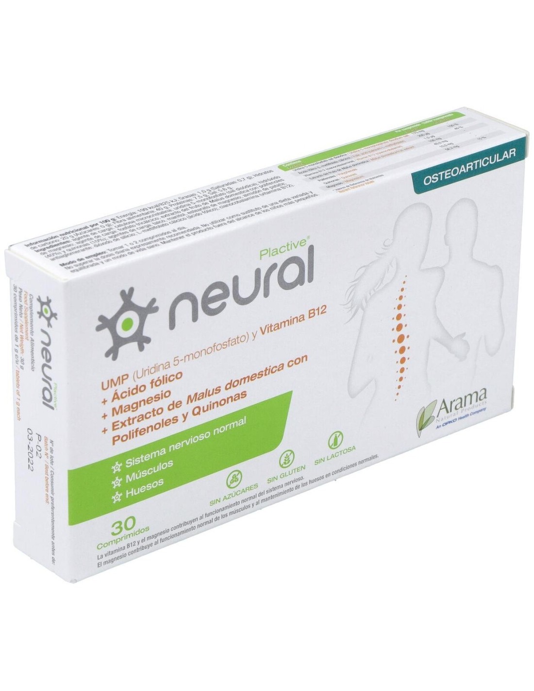 Arama Plactive Neural 30comp es un complemento alimenticio para el cuidado de la salud. Está diseñado para adultos, para contribuir al funcionamiento normal del sistema nervioso, los músculos y los huesos.