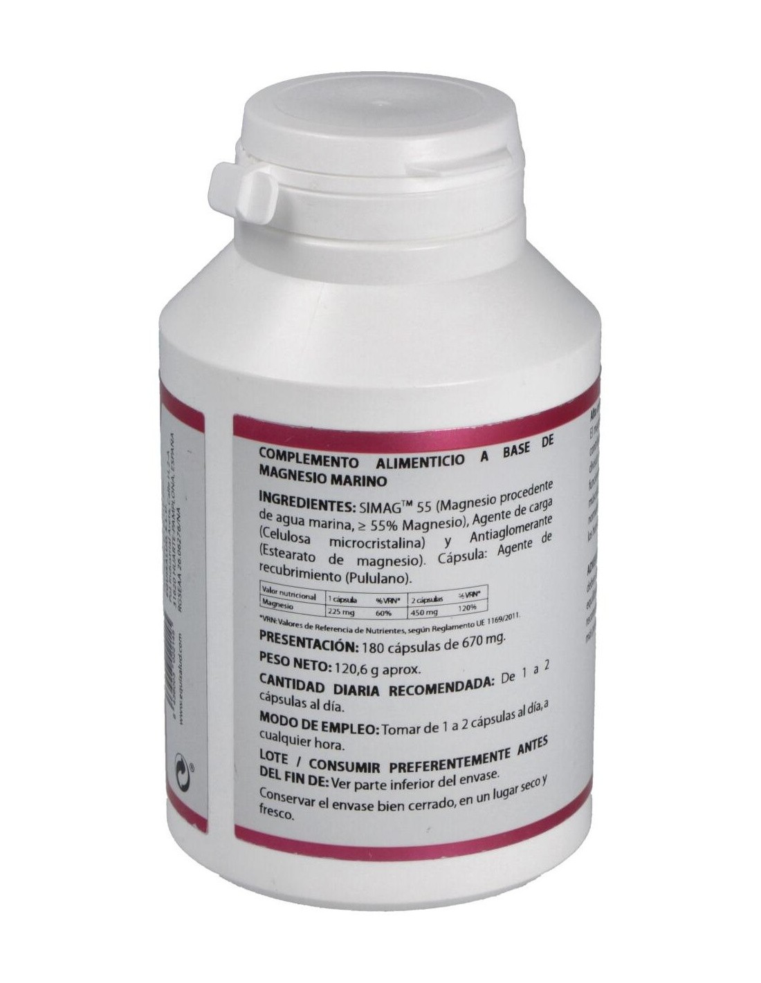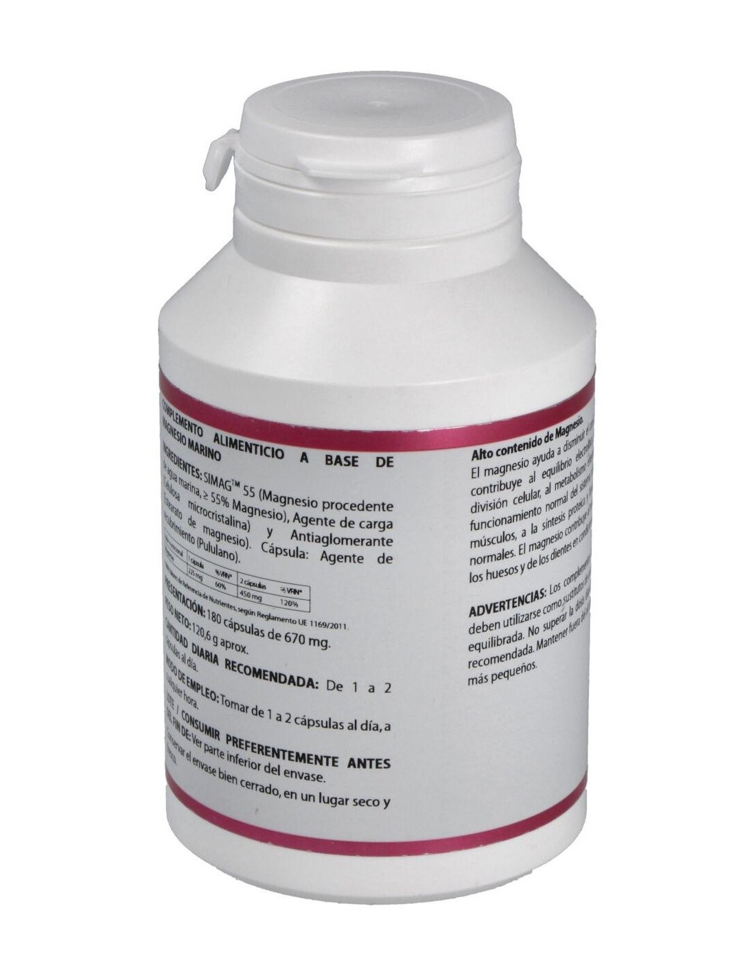 409 mg de SIMAGTM 55 (magnesio de agua marina, = 55% Magnesio).