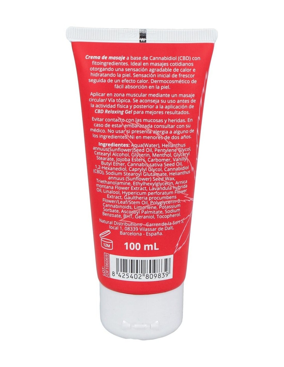 Crema efecto calor que combina ingredientes como CBD, aceite de semilla de cáñamo, árnica, hipérico, gaulteria y lavandín idóneos para el masaje de la piel en músculos y articulaciones. El CBD trabaja conjuntamente con el extracto de árnica, hipérico y lavandín actuando como relajante muscular y articular y aliviando y reconfortando la zona tratada.