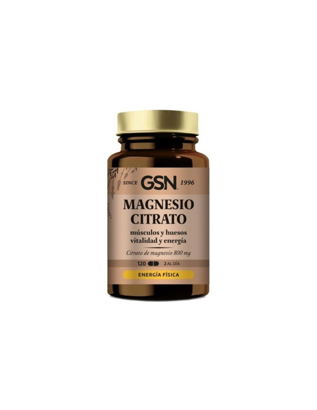 El Magnesio Citrato 120 Comprimidos de GSN es un suplemento para personas que buscan apoyar la función muscular y nerviosa, formulado con magnesio en forma citrato para una mejor absorción.