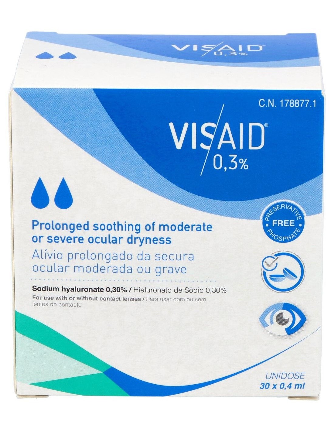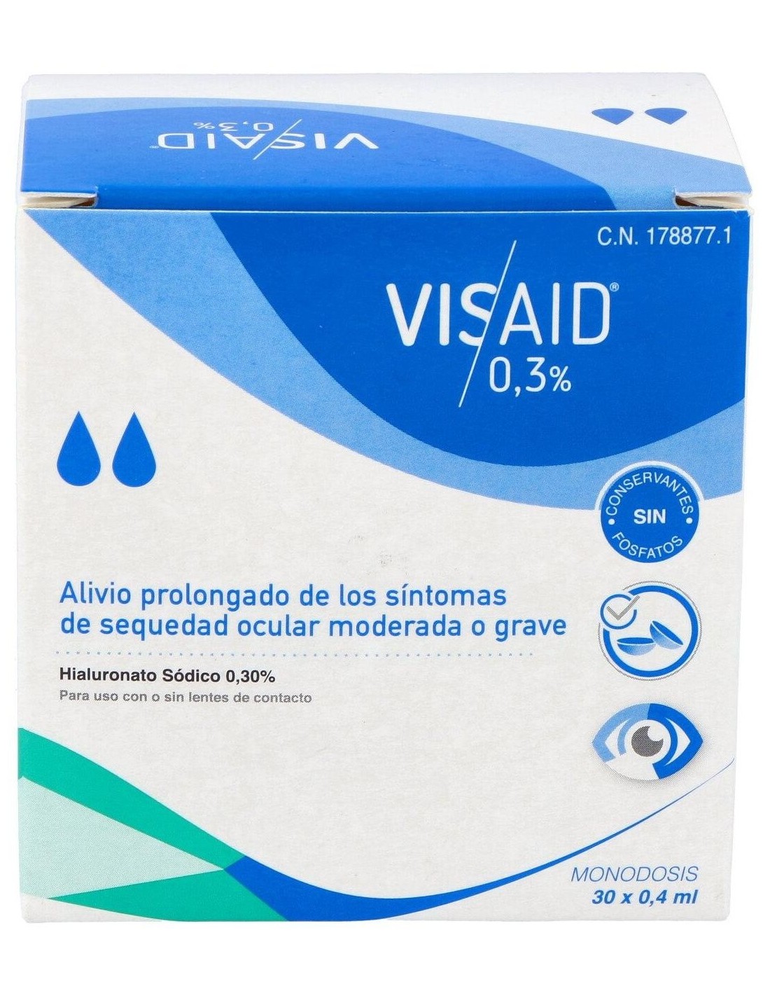 AVIZOR | Visaid 0,3% gotas oculares estériles 0,4ml x 30udsDebido a los empleos de oficina en los que los ojos son expuestos a horas y horas de tareas frente a un ordenador, pantallas de todo tipo y papeleo, estos suelen resecarse y verse afectados más facilmente de lo que pensamos.Visaid presenta estas gotas estériles en formato monodosis (0.