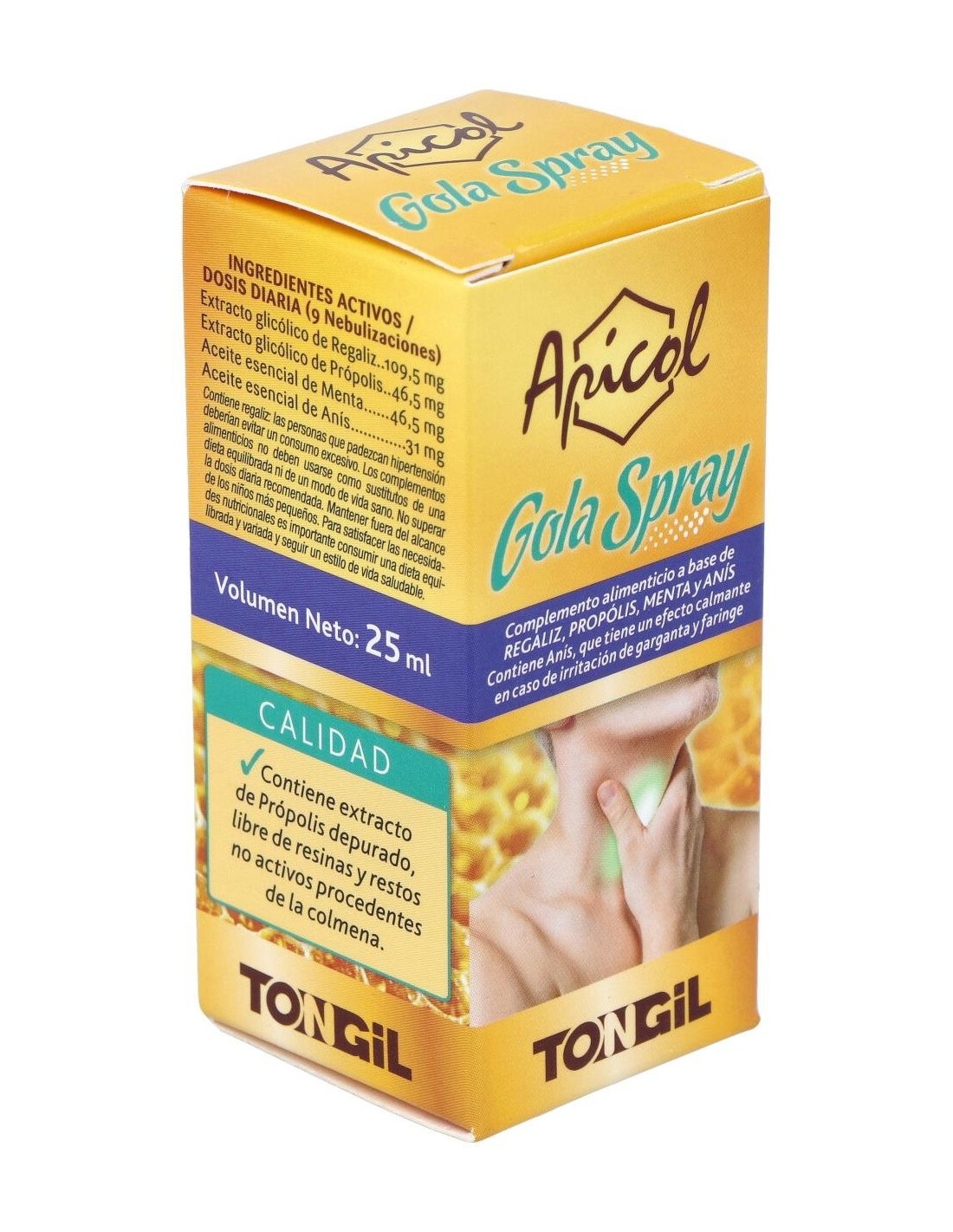 El Apicol Gola Spray 25Ml de Tongil es un complemento para personas que buscan aliviar molestias en la garganta, ofreciendo una fórmula que ayuda a calmar y refrescar gracias a sus ingredientes seleccionados.