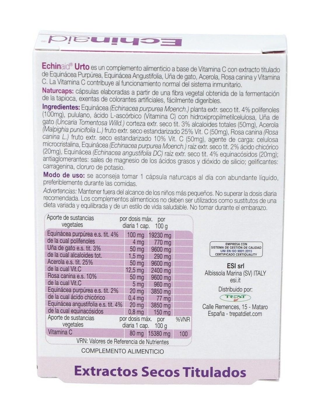 100 mg de extracto seco de equinácea purpúrea (4% polifenoles).