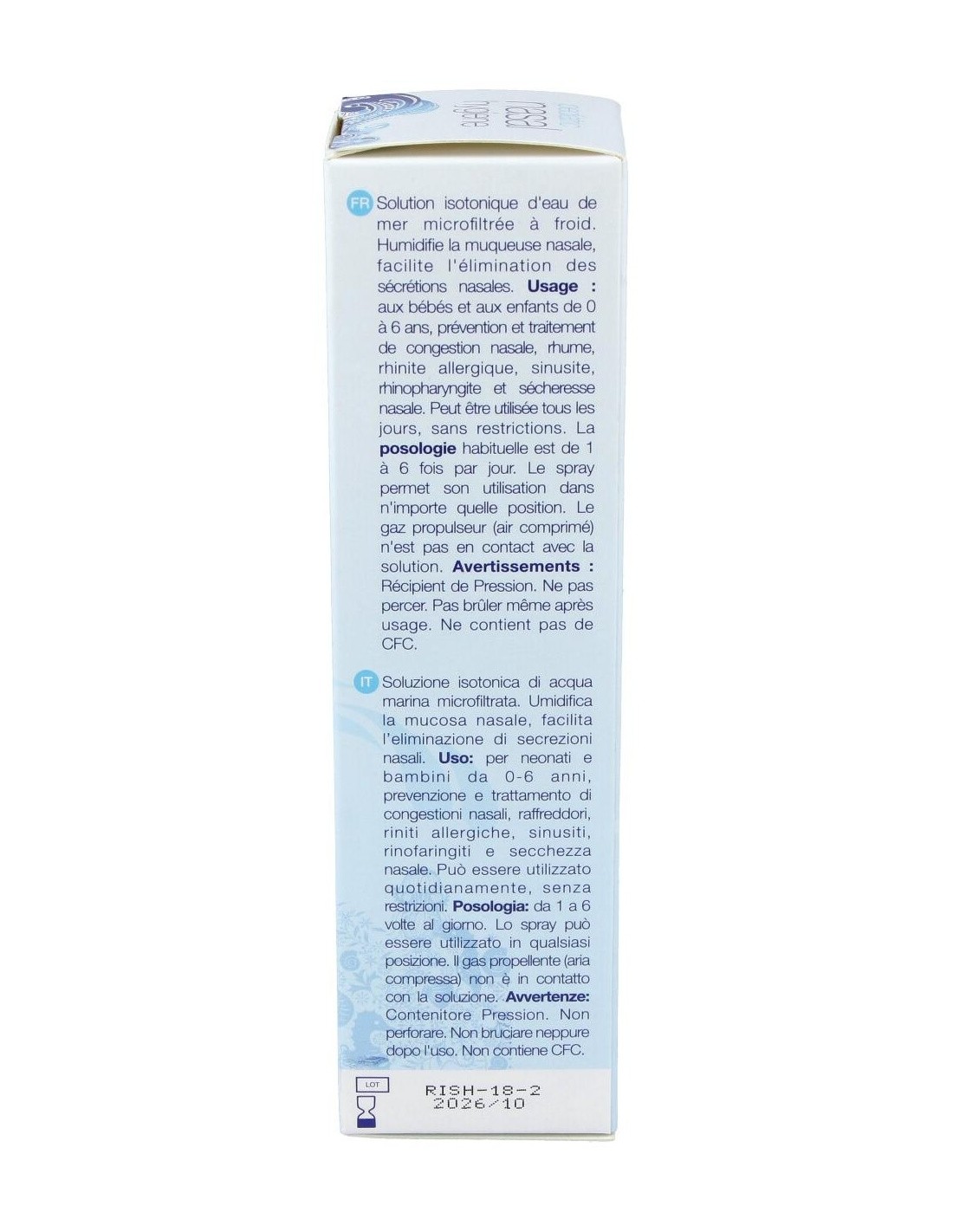 Solución isotónica de agua de mar microfiltrada en frío.