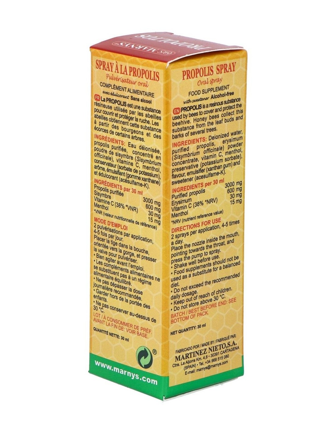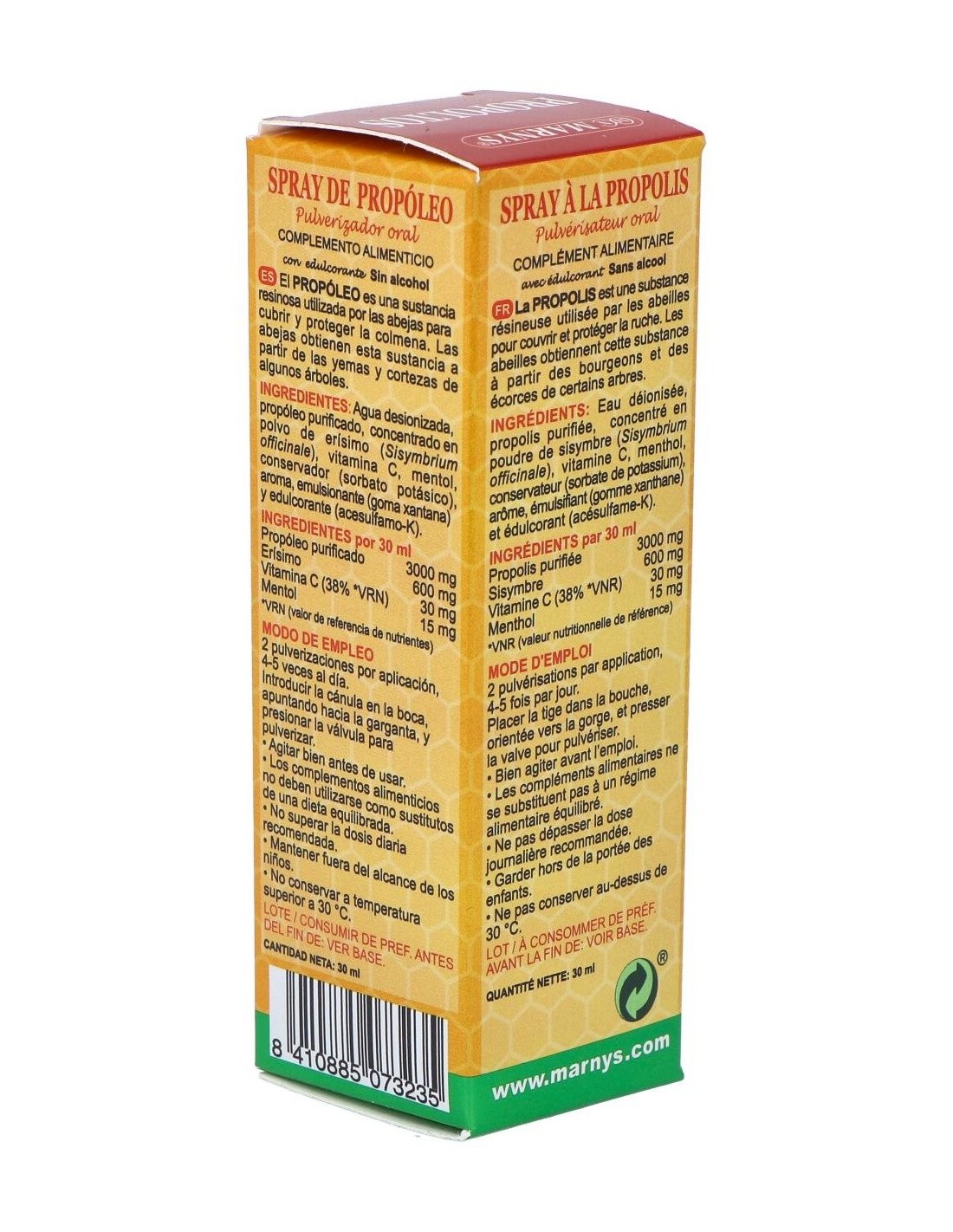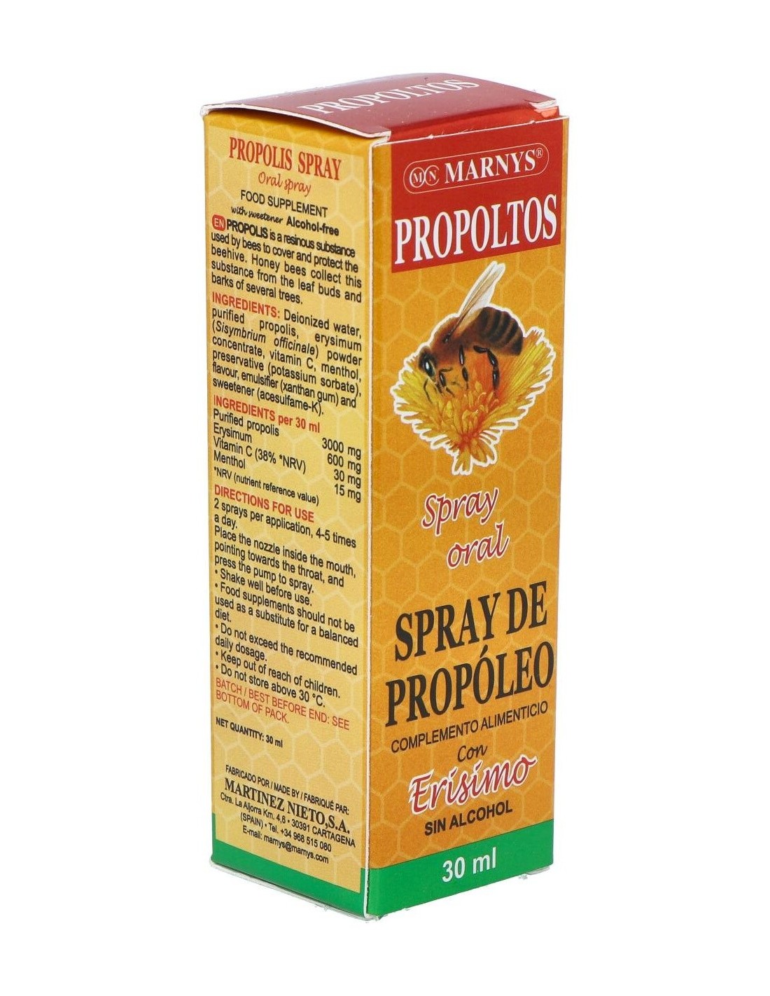 El Propoltos Spray Propolis 30Ml. de Marnys es un complemento natural para personas que buscan cuidado bucal. Facilita la aplicación de propóleo en spray, aportando una fórmula práctica y dosificada para uso diario.
