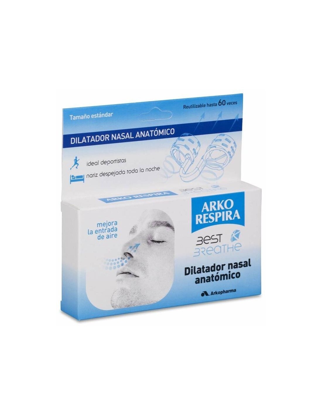 ARKOPHARMAFacilita la entrada del aire al dilatar las fosas nasales internamente mejorando así la respiración. Mejora el descanso nocturno. Las fosas nasales pueden obstruirse o colapsarse por diversas razones pudiendo dificultar el sueño al vernos obligados a respirar por la boca. Cómodo y seguro. Gracias a su diseño se adapta perfectamente a cualquier fosa nasal sin tener que preocuparse por su caída. Discreto, gracias a su tamaño y color transparente. No contiene látex.