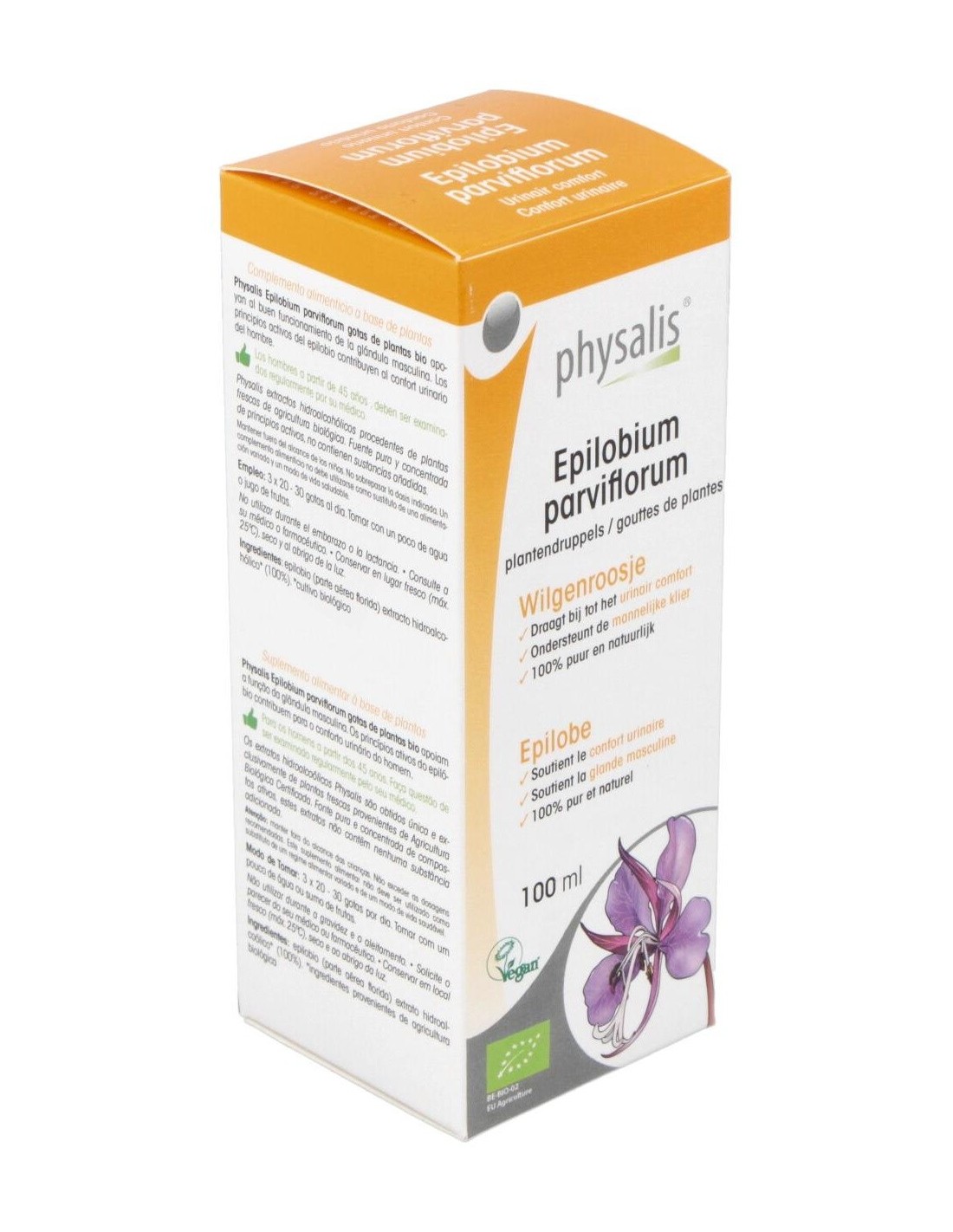 La Tintura Epilobium Parviflorum (Epilobio) de Physalis es un complemento natural para personas que buscan apoyar el bienestar urinario, elaborado mediante extracción cuidadosa para conservar sus propiedades activas.
