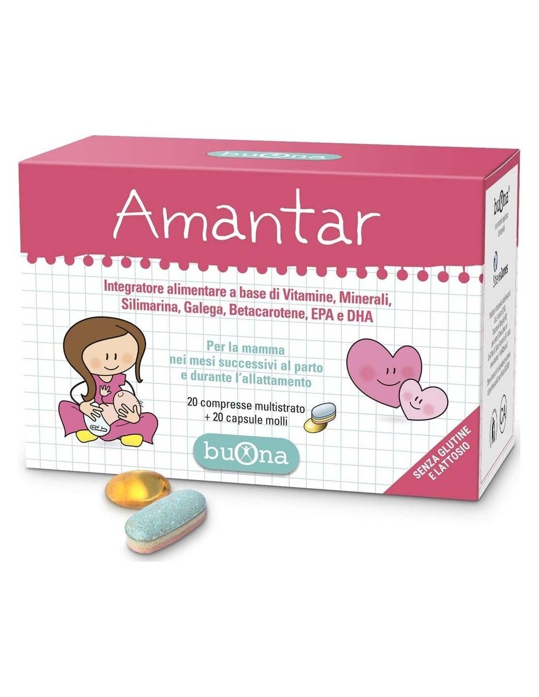 Indicado para la madre en los meses sucesivos al parto y durante la lactancia, a base de Vitaminas, Minerales, Silimarina, Galega, Betacaroteno, EPA y DHA. La tecnología multicapa garantiza una liberación diferenciada de los principios activos, ofreciendo una mayor estabilidad y biodisponibilidad de minerales y vitaminas, donde y cuando sean necesarios.