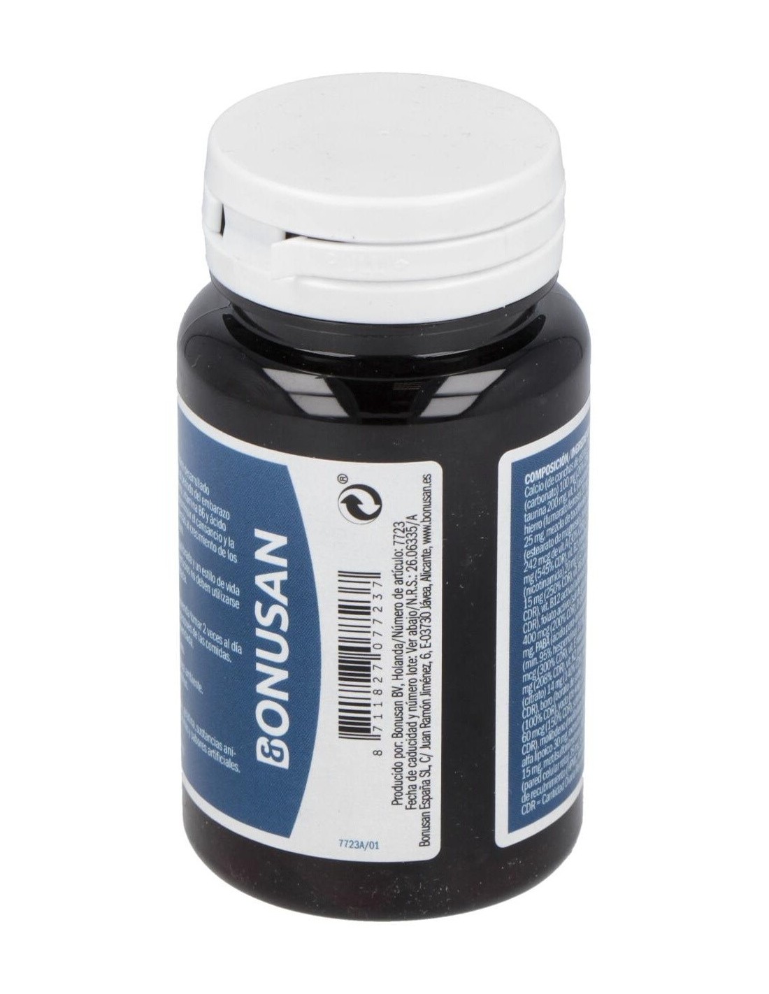 Conchas de ostras granuladas, carbonato de magnesio, agente de carga (celulosa microcristalina), taurina, ascorbato de magnesio, fumarato ferroso, bitartrato de colina, mezcla de tocoferoles naturales, antiaglomerante (sales magnésicas de ácidos grasos), agente de carga (hidroxipropilcelulosa), citrato de zinc, alfa-tocoferil succinato, acido alfa lipoico, betacaroteno, chlorella (Chlorella pyrenoidosa, contiene naturalmente sulfitos), espirulina (Spirulina platensis, contiene naturalmente sulfitos), kelp (Laminaria digitata), nicotinamida, bioflavonoides de cítricos, pantotenato de calcio, bambú (Bambusa arundinacea), inositol, metilsulfonilmetano, ácido paraaminobenzoico, lisinato de cobre, selenio-L-metionina, borato de sodio, tiamina, colecalciferol, citrato de manganeso, riboflavina, biotina, piridoxal-5-fosfato, menaquinona-7, ácido (6S)-5-metiltetrahidrofólico sal de glucosamina, picolinato de cromo, adenosilcobalamina, metilcobalamina, molibdato de amonio, agente de recubrimiento (hidroxipropilmetilcelulosa), aceite MCT.