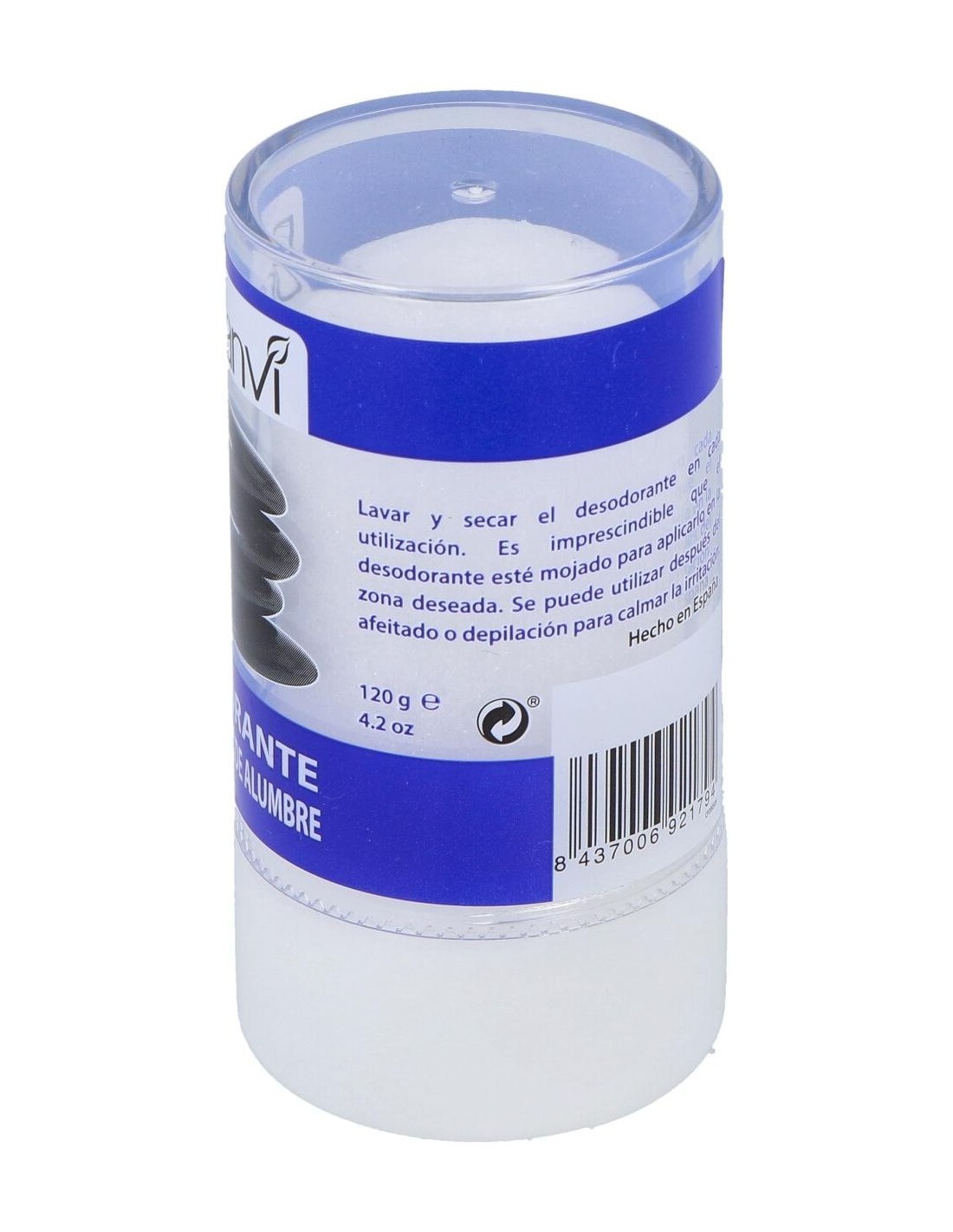 La piedra de alumbre es un mineral que actúa de manera muy eficaz como desodorante. En lugar de enmascarar el olor con perfume, destruye las bacterias que descomponen el sudor y causan el mal olor. Al erradicar el problema del mal olor, su efecto es duradero, dejándose sentir durante varias horas.Ingredientes:100% alumbre de potasio.Modo de empleo:Lavar y secar el desodorante en cada utilización. Es imprescindible que el desodorante esté mojado para aplicarlo en la zona deseada.