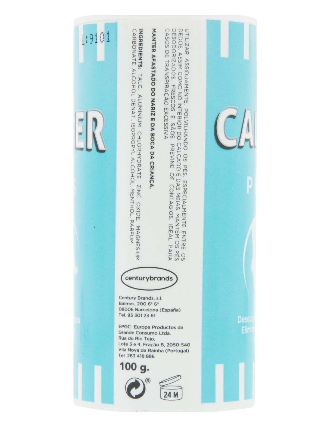 CALBERIdeal contra el mal olor y sudoración excesiva.\ Elimina el olor.\ Acción antitranspirante.\ Absorbe el exceso de sudoración.\ Efecto calmante en la piel.\ Sensación de frescor relajante durante horas.\ Previene contra contagios por hongos.\ Poder Bacterizida + Fórmula Mentolada = Eficacia.