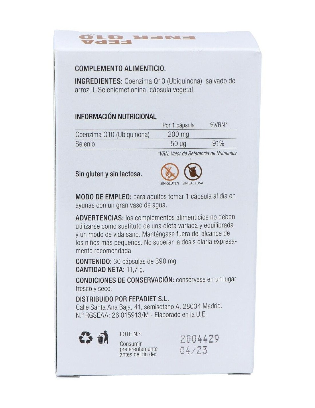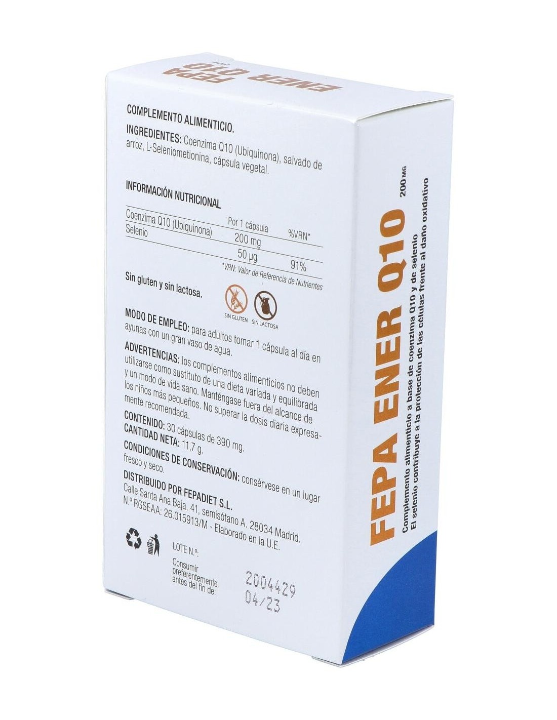 Fepa-Ener Q10 200Mg+Seleniometionina 30Cap. de Fepadiet es un suplemento diseñado para personas que buscan apoyar su bienestar general mediante ingredientes específicos. Está indicado para quienes desean complementar su dieta con coenzima Q10 y seleniometionina en una presentación cómoda y dosificada.