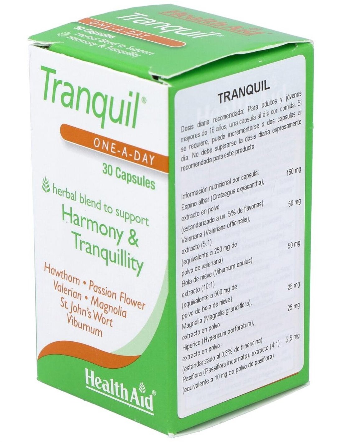 Tranquil 30Cap. Health Aid de Health Aid ofrece una opción práctica para quienes buscan un apoyo diario orientado a mantener un estado de calma y equilibrio.