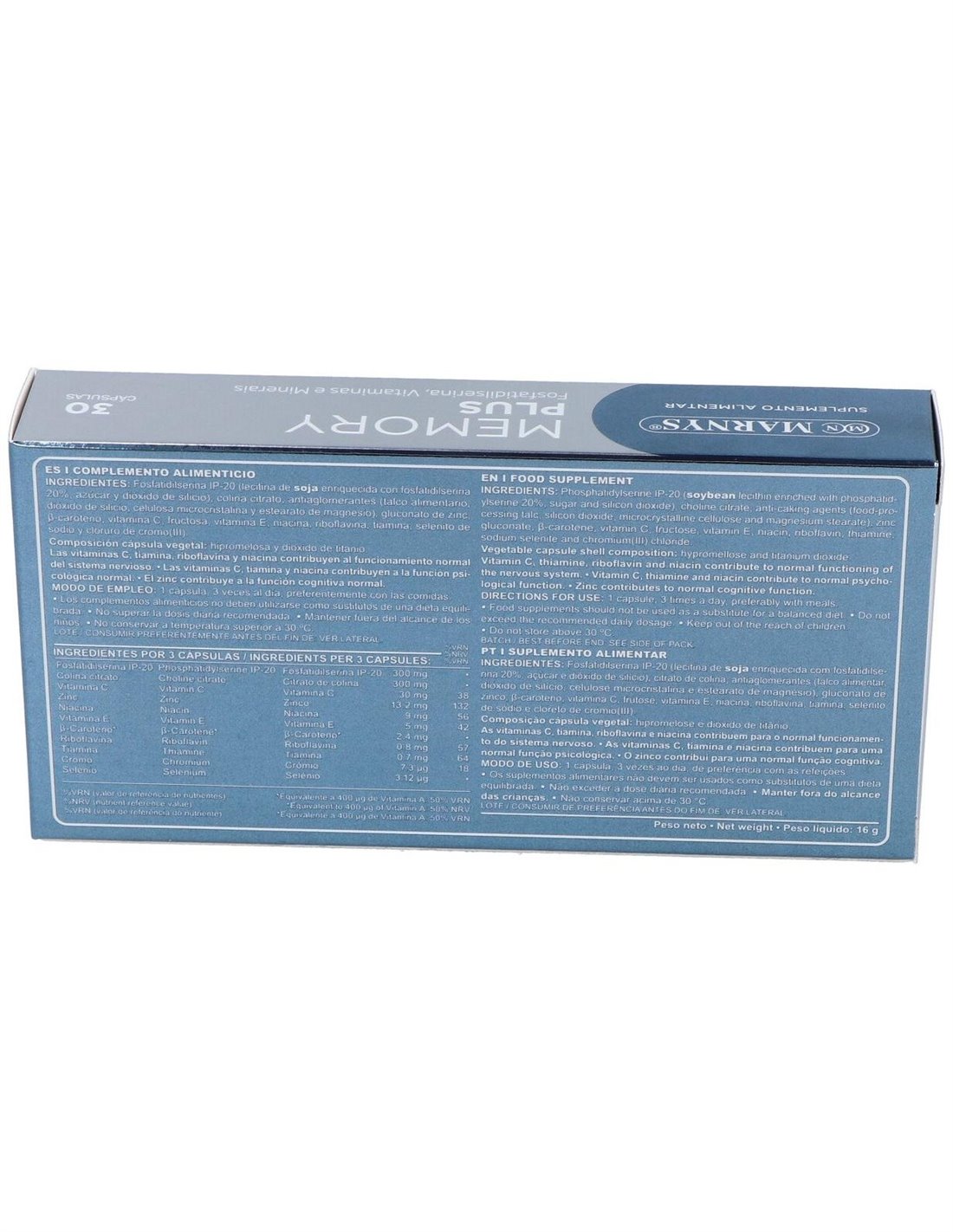 Memory Plus 30Cap. de Marnys es un complemento alimenticio diseñado para personas que buscan apoyar sus funciones cognitivas y mantener un estilo de vida activo y equilibrado. Su formulación está pensada para quienes desean contribuir al bienestar mental diario de forma natural.