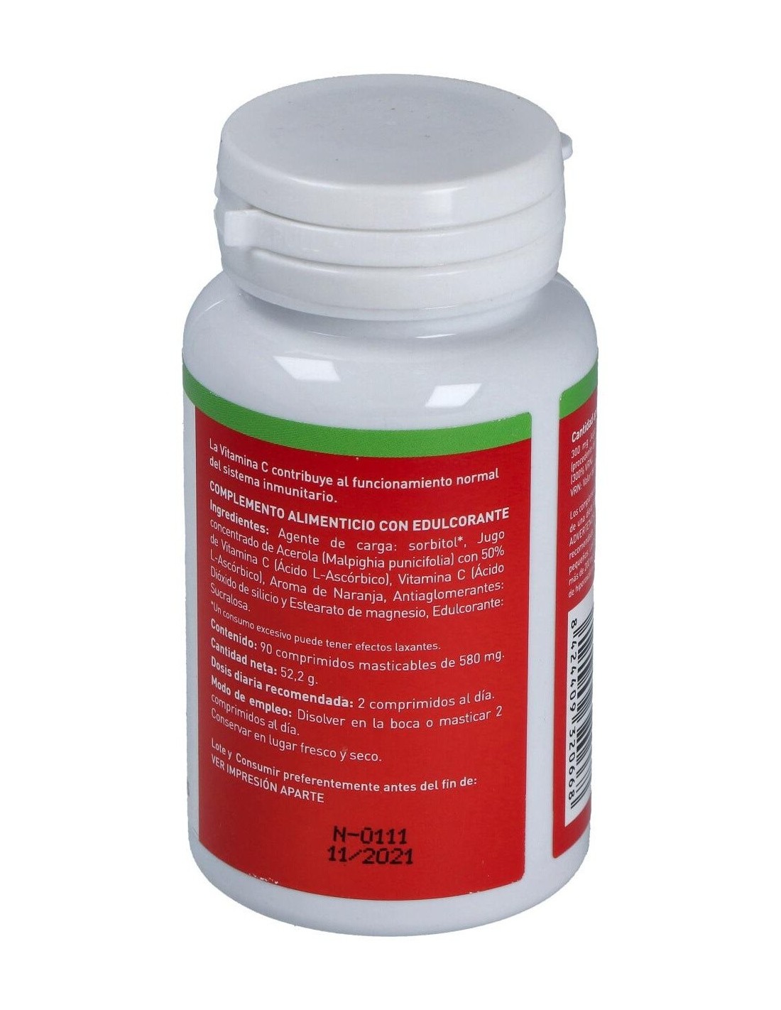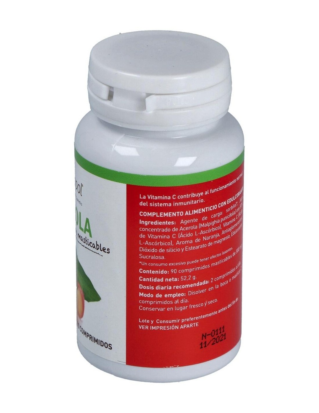 - Cada comprimido contiene 580 mg de acerola, una fuente natural de vitamina C que contribuye al mantenimiento del sistema inmunológico.