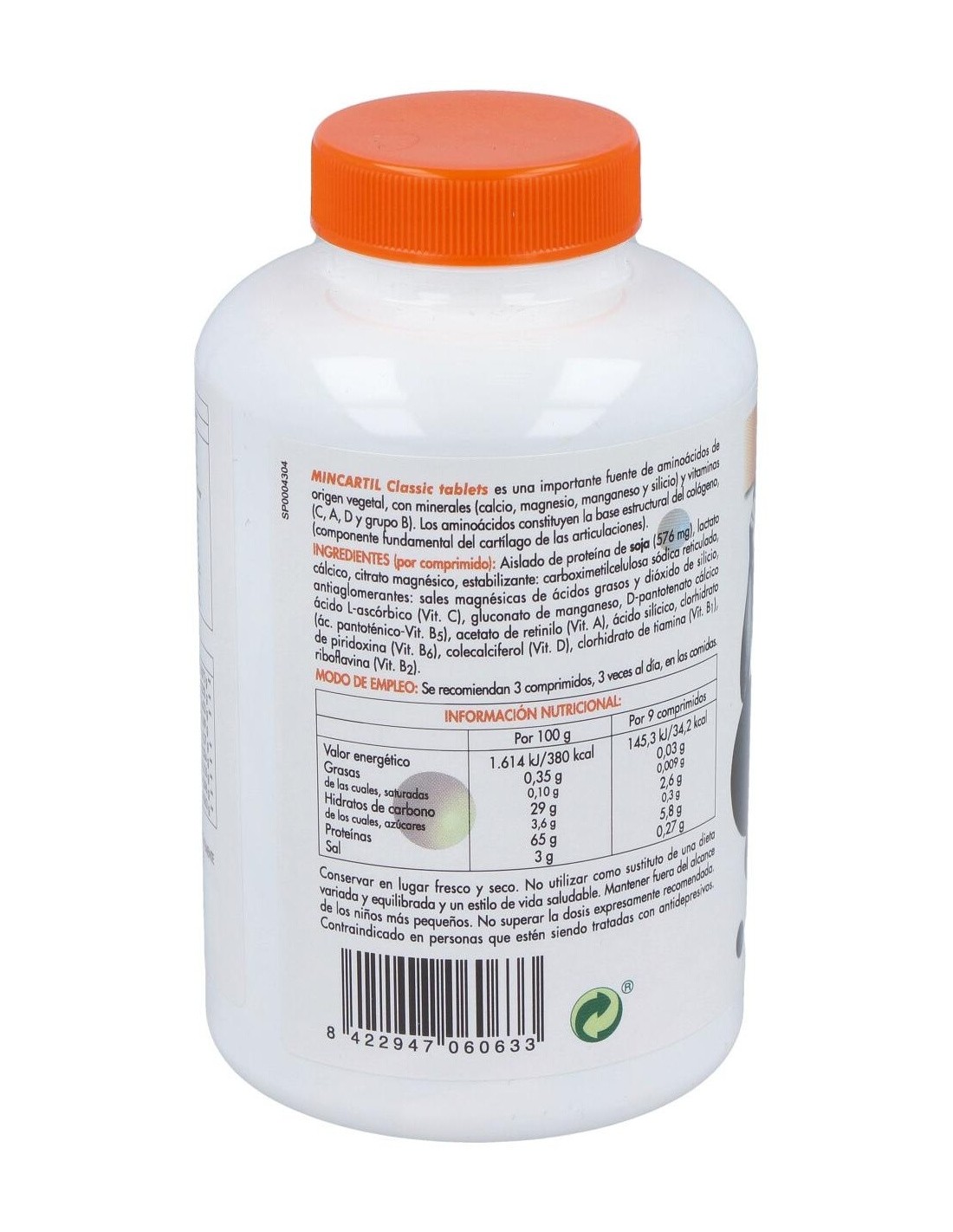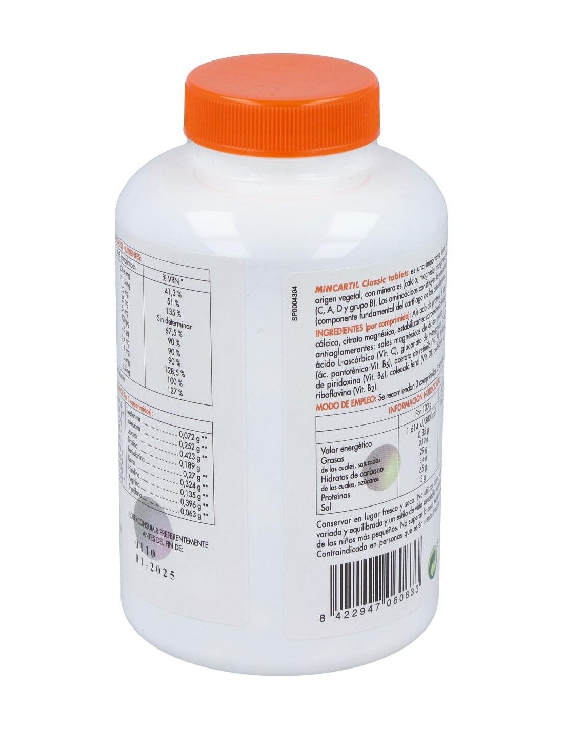 Este producto está elaborado con ingredientes naturales cuidadosamente combinados para favorecer el cuidado articular. Su presentación en envase de 180 comprimidos ofrece una duración adecuada para un uso continuado. Mincartil Clasic se adapta a estilos de vida que buscan complementar la alimentación con productos que apoyan la función articular.