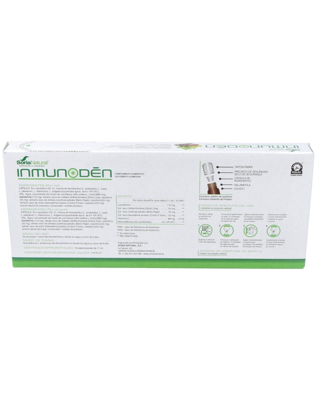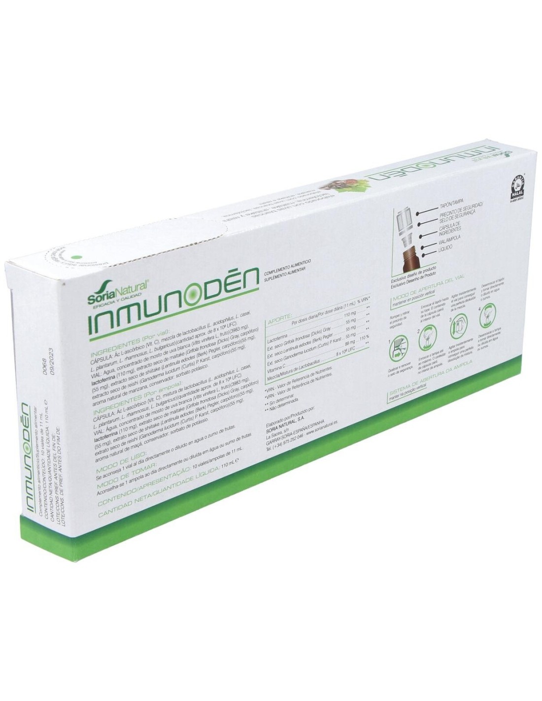 Inmunoden Senior 10Viales de Soria Natural es un complemento alimenticio diseñado para personas adultas que buscan apoyar su bienestar general a través de ingredientes seleccionados. Está formulado para integrarse en la rutina diaria de quienes desean mantener un estilo de vida equilibrado.