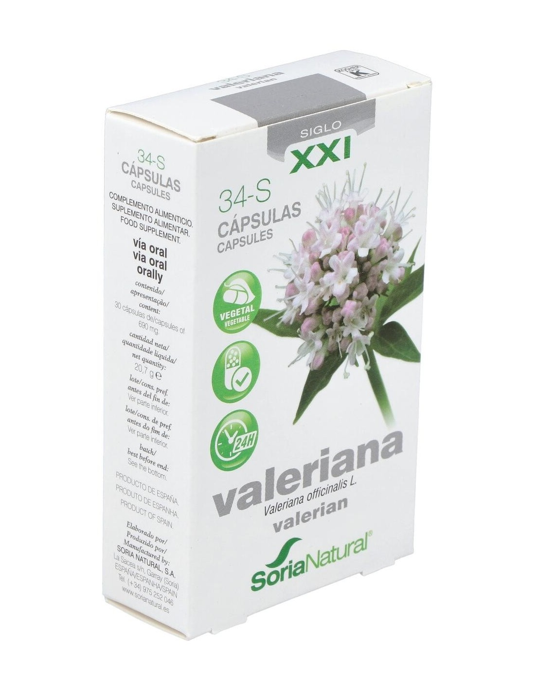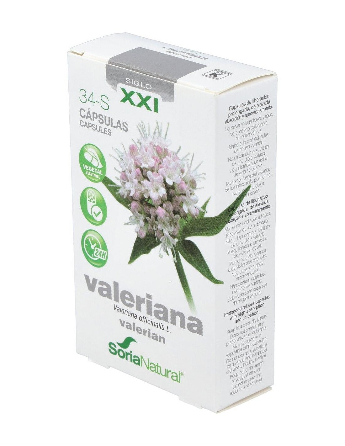 Cap.S 34 Valeriana Xxi 30Cap. de Soria Natural es un complemento alimenticio diseñado para personas que buscan apoyar su bienestar diario mediante ingredientes de origen natural. Este producto es adecuado para quienes prefieren opciones basadas en plantas dentro de su rutina de cuidado personal.