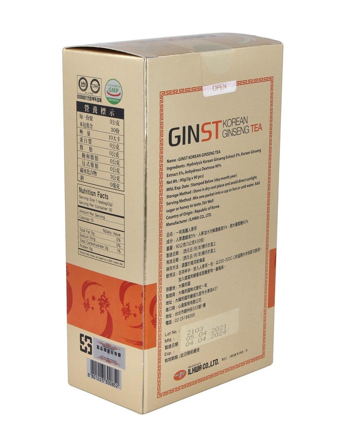 Korean Ginseng Tea Il Hwa (Ginst15) 30Sbrs. de Tongil