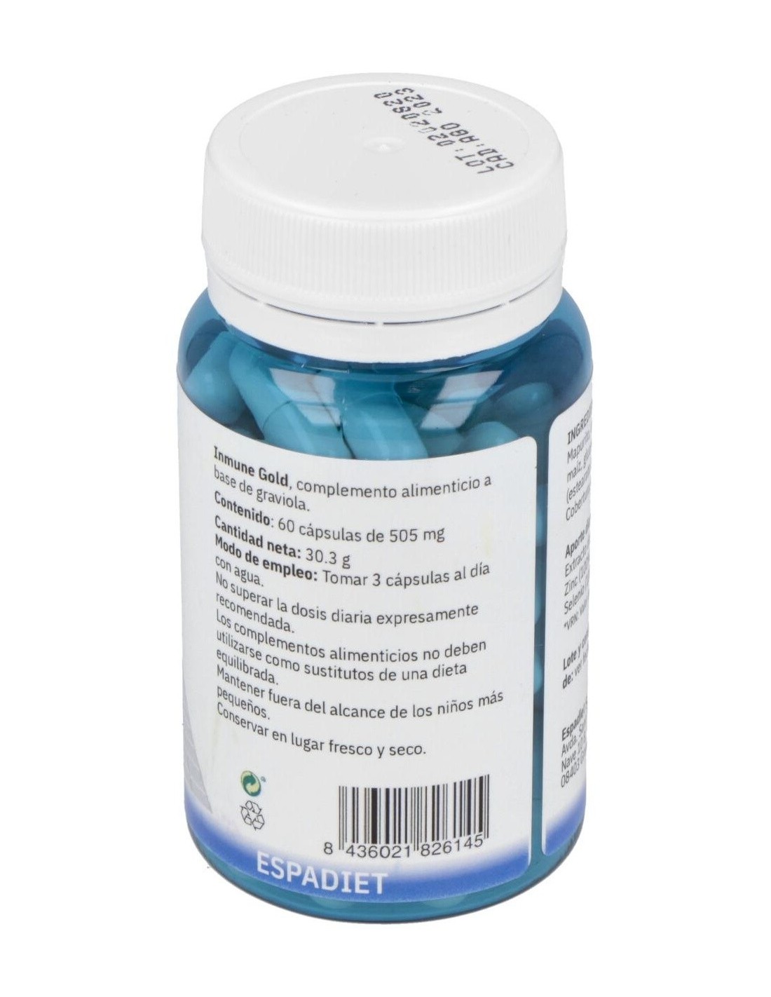 Inmune Gold 60Cap. de Espadiet es un complemento diseñado para personas que buscan apoyar su bienestar diario mediante una fórmula equilibrada. Está pensado para quienes desean mantener un estilo de vida activo y cuidar su sistema inmunológico con ingredientes seleccionados.