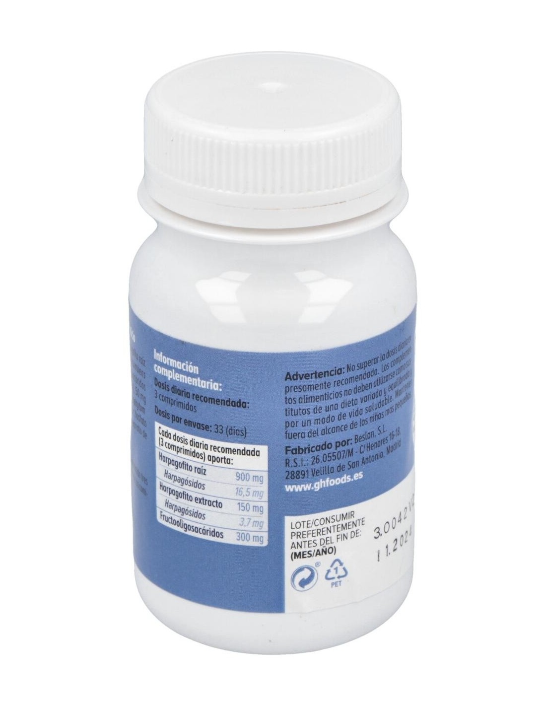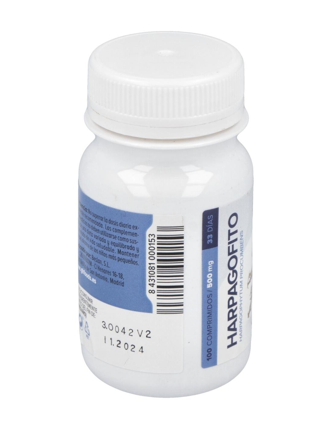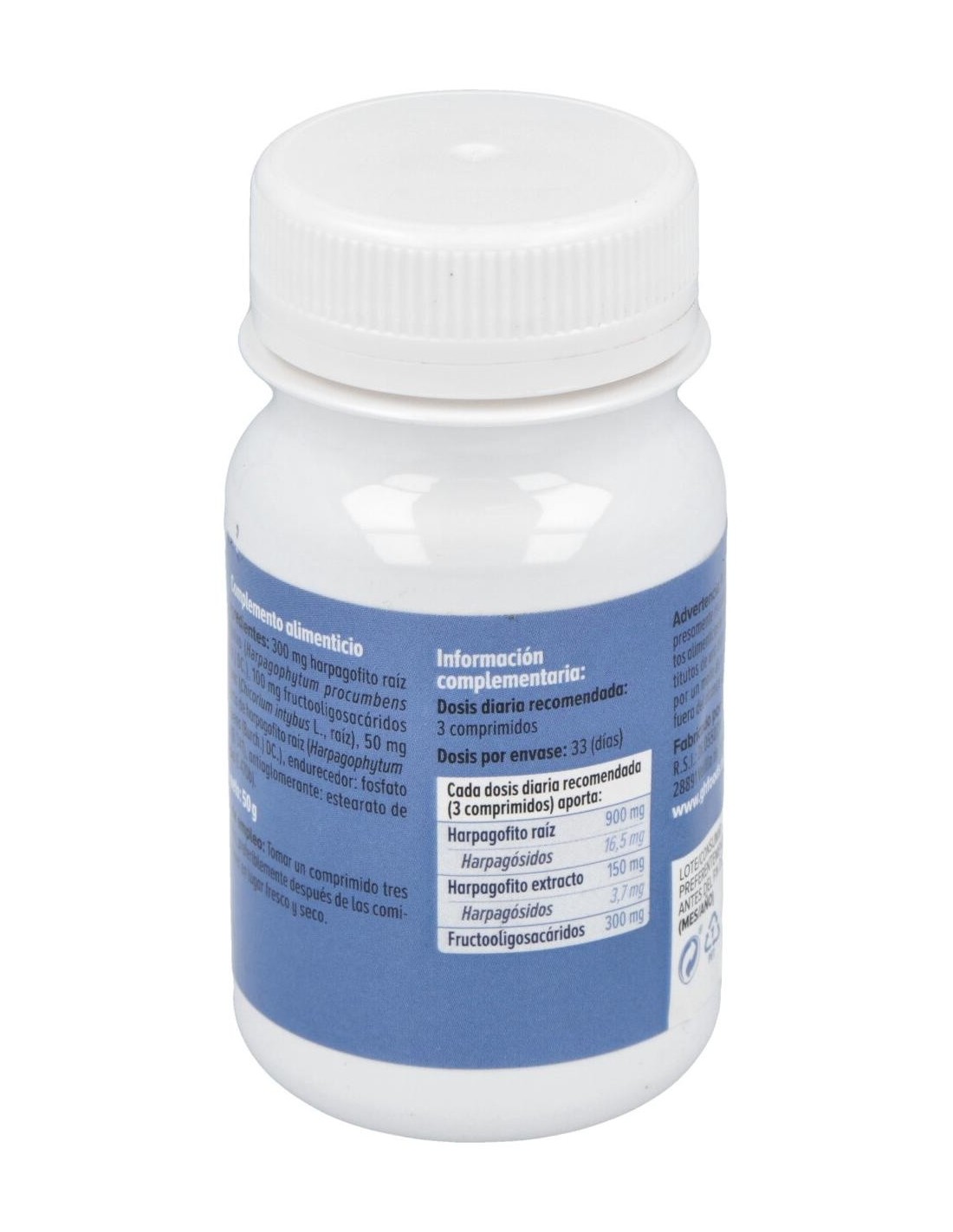 - Cada comprimido contiene 500 mg de extracto de harpagofito, reconocido por su composición natural.