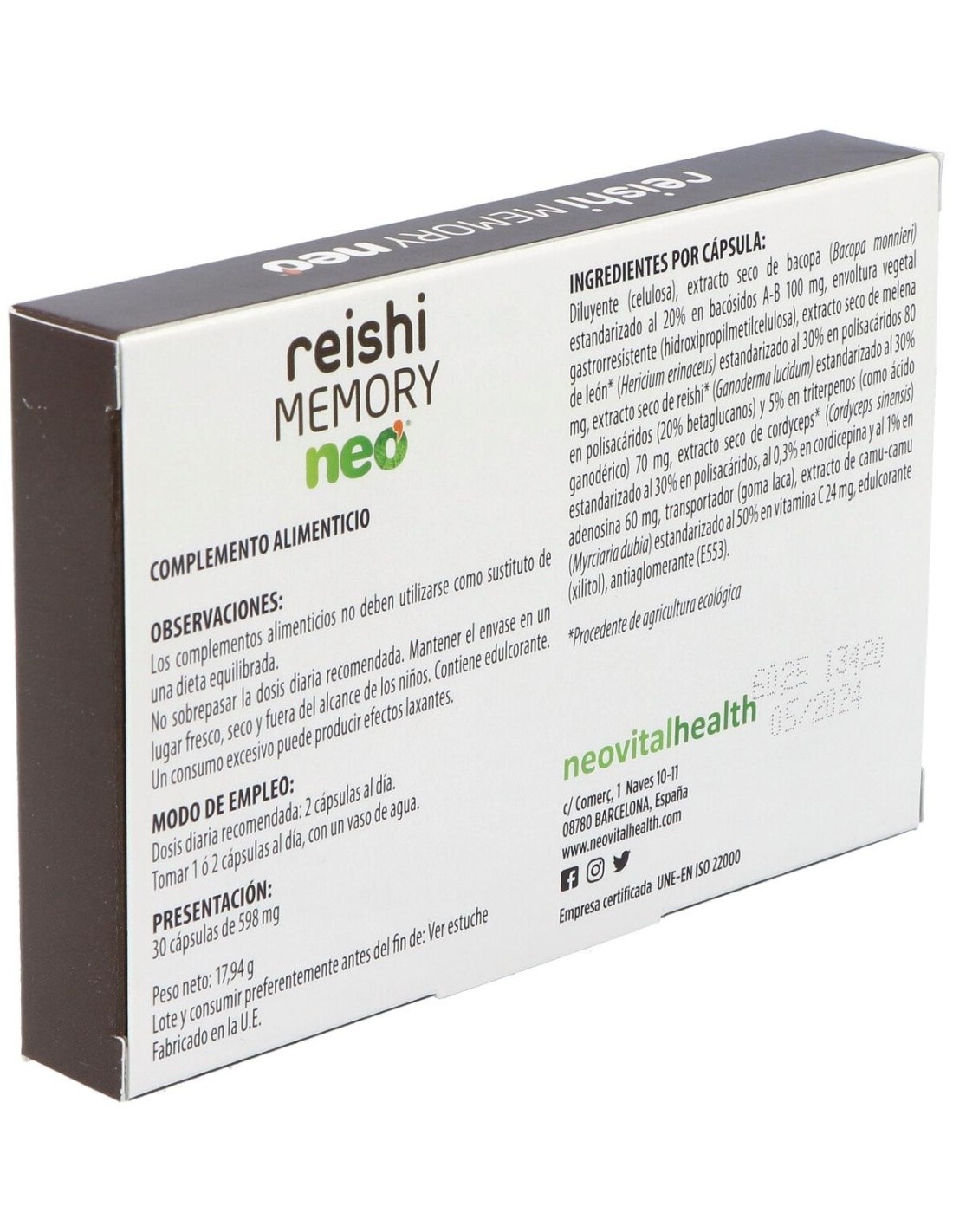 Las cápsulas de Reishi Memory Neo están formuladas con extractos estandarizados que garantizan la consistencia en cada dosis. Su diseño compacto y la selección cuidadosa de ingredientes permiten una administración práctica y adecuada para quienes buscan complementar su cuidado personal.