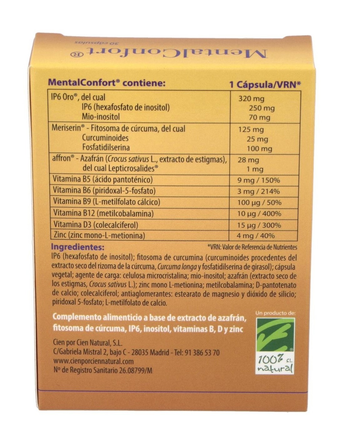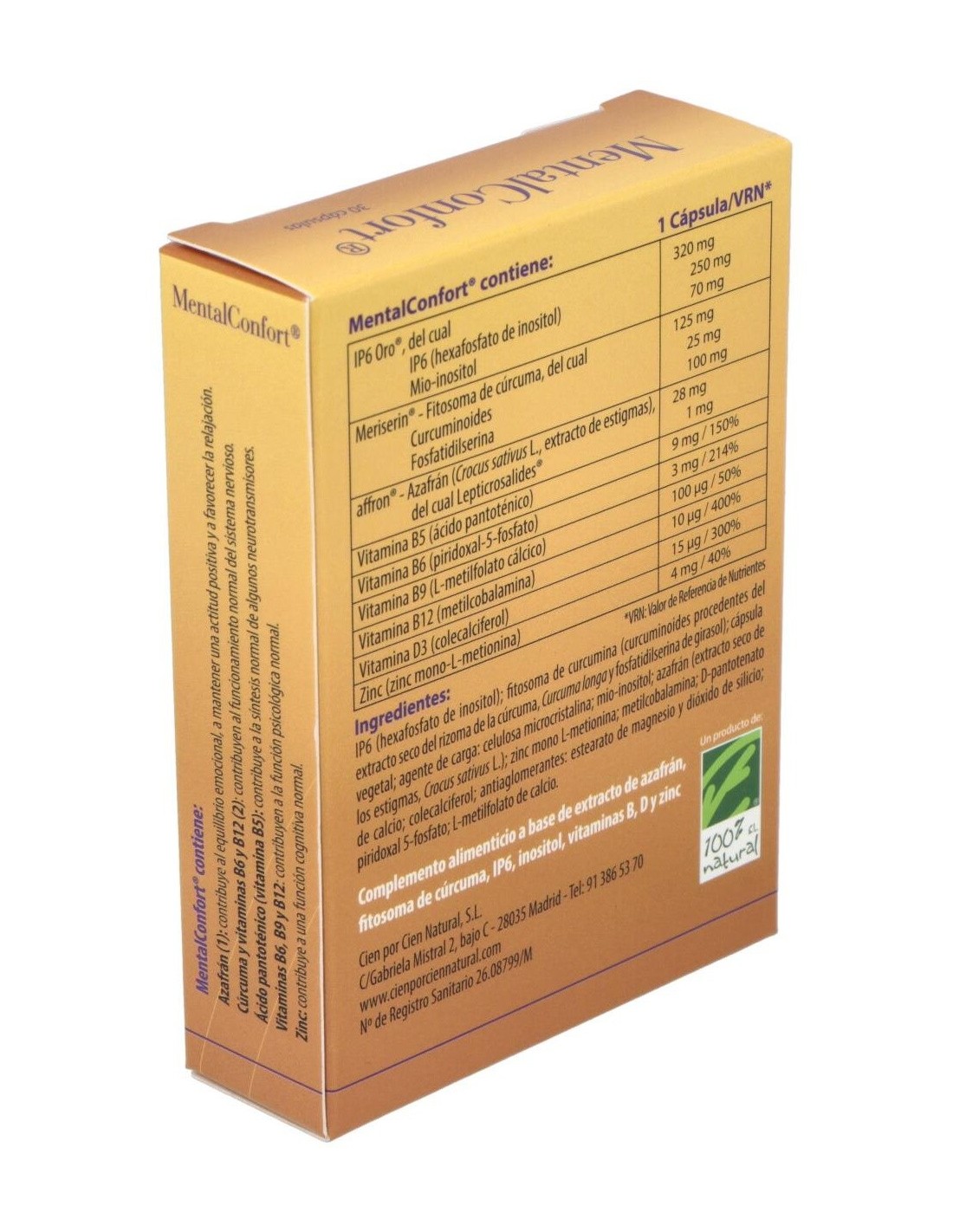 Mentalconfort 30Cap. de Cien Por Cien Natural ofrece una alternativa natural para quienes buscan complementar su cuidado mental con ingredientes provenientes de fuentes naturales.