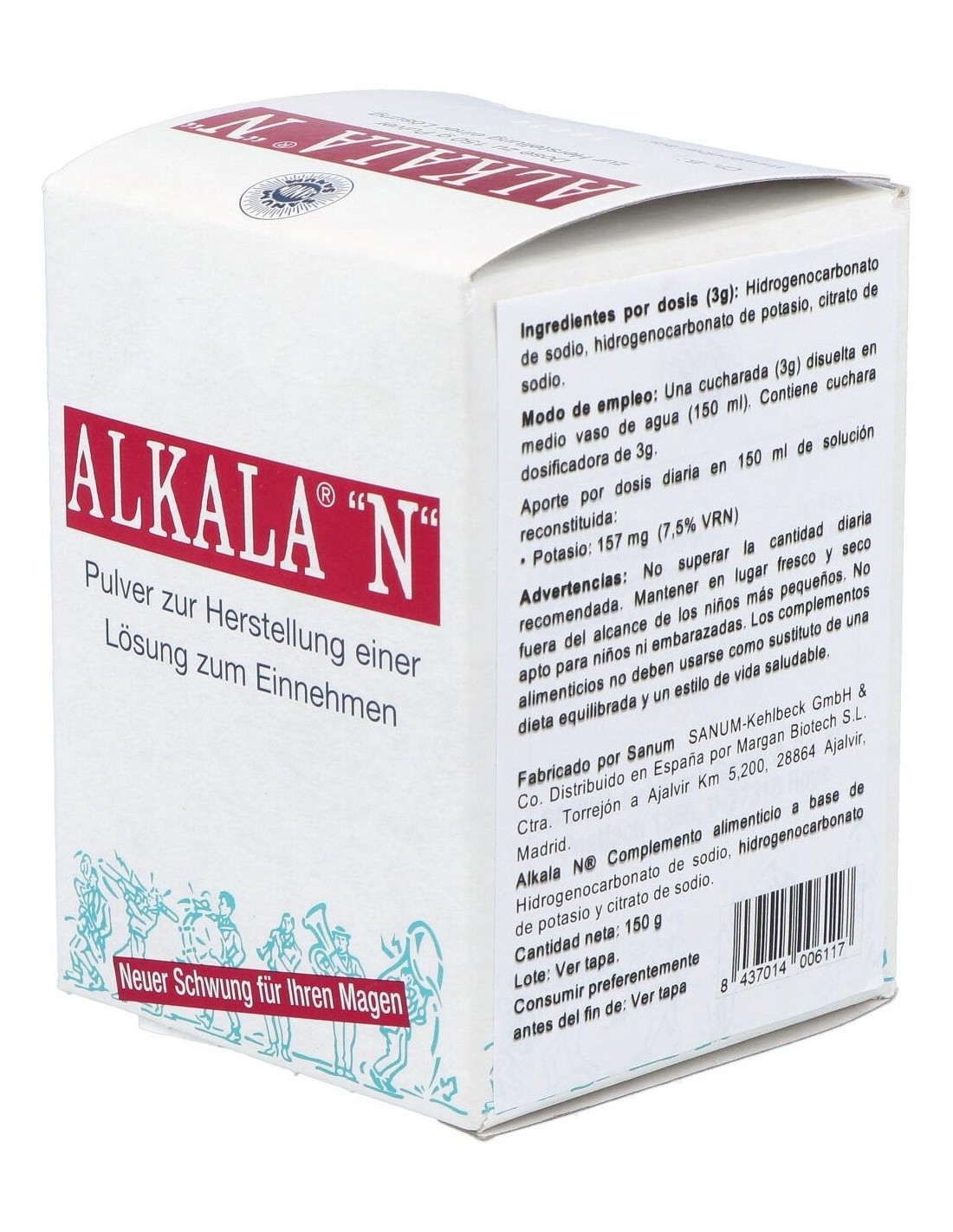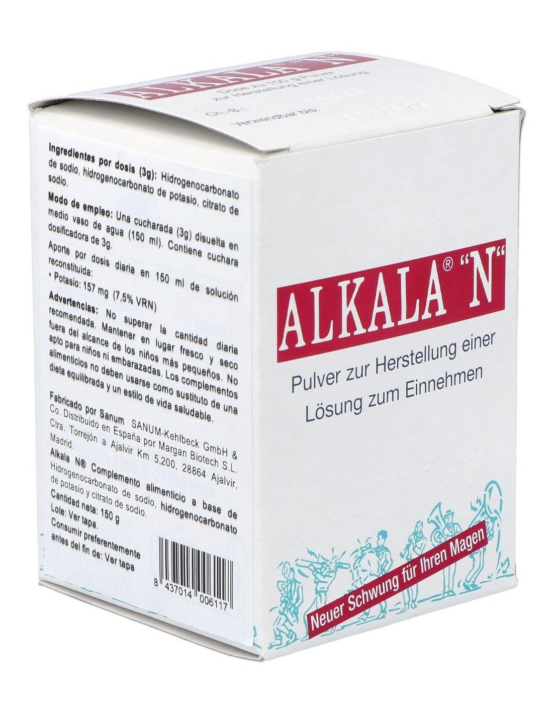Agente alcalinizante a base hidrogenocarbonato de sodio, potasio y citrato sódico. Contiene tiras para la medición del pH en orina, durante todo el tratamiento con Alkala N.
