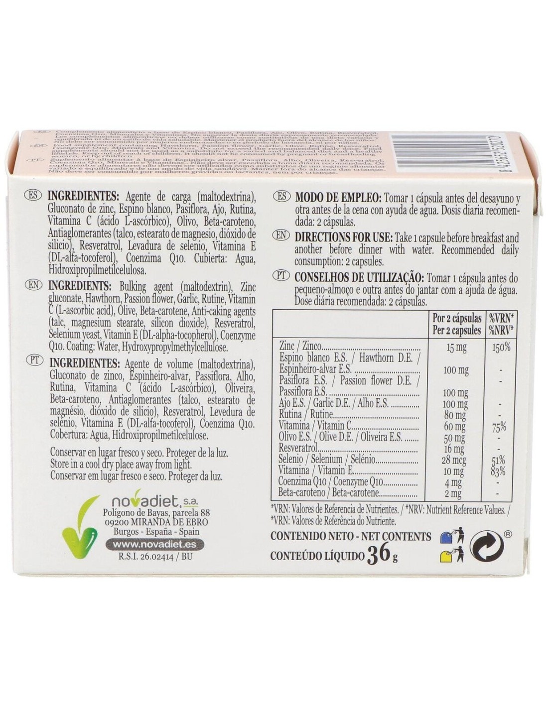 - Cápsulas vegetales que facilitan la digestión y son aptas para dietas vegetarianas y veganas.
