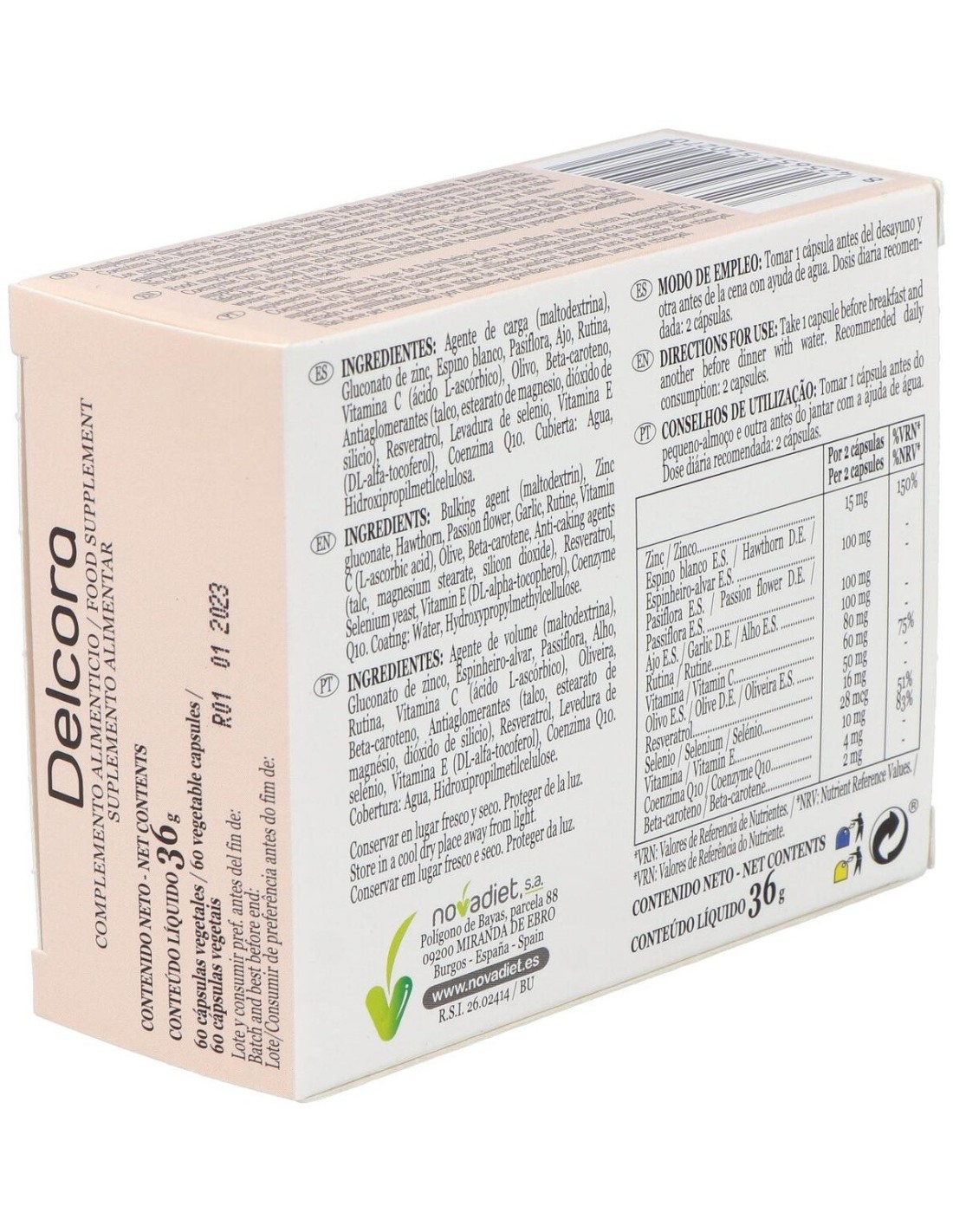 Delcora Envase de 60 cápsulas vegetales. de Novadiet