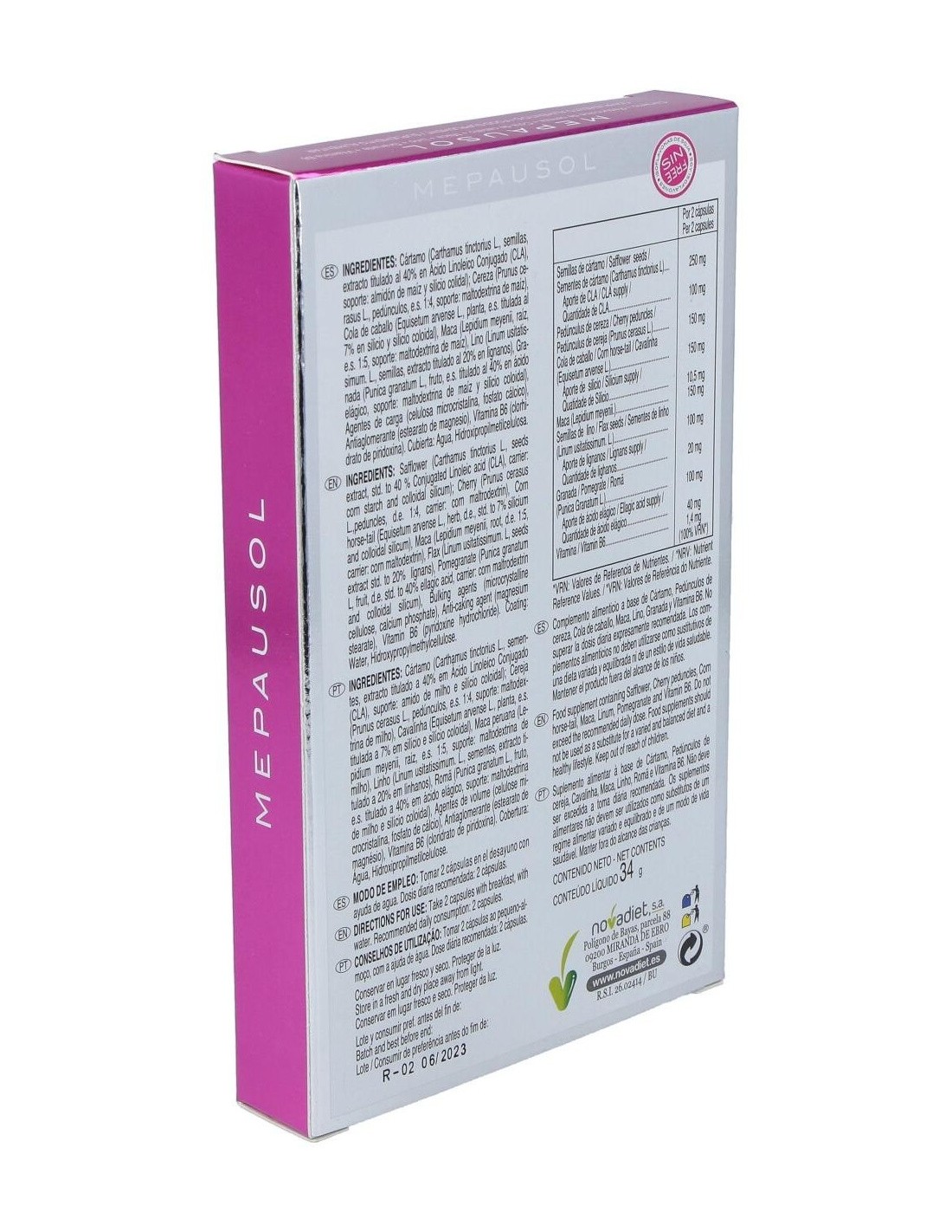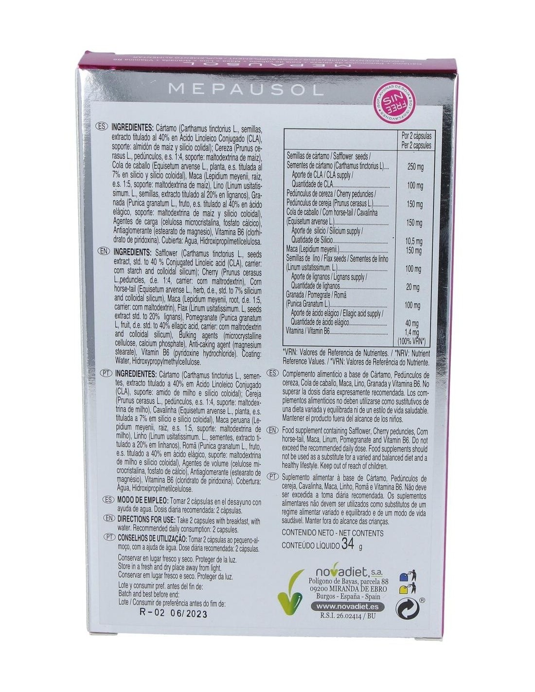 Mepausol Envase de 60 cápsulas vegetales. de Novadiet