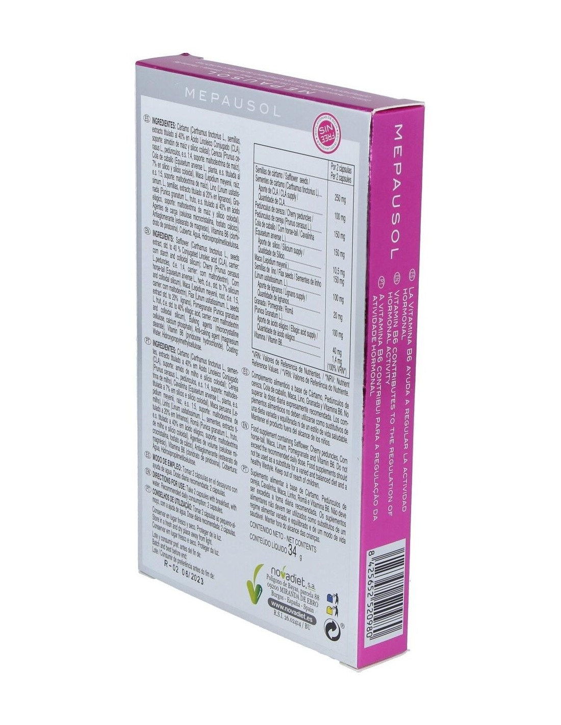 Mepausol de Novadiet ofrece una alternativa natural para quienes desean apoyar su bienestar durante la menopausia, combinando ingredientes seleccionados en un formato cómodo y vegetal.
