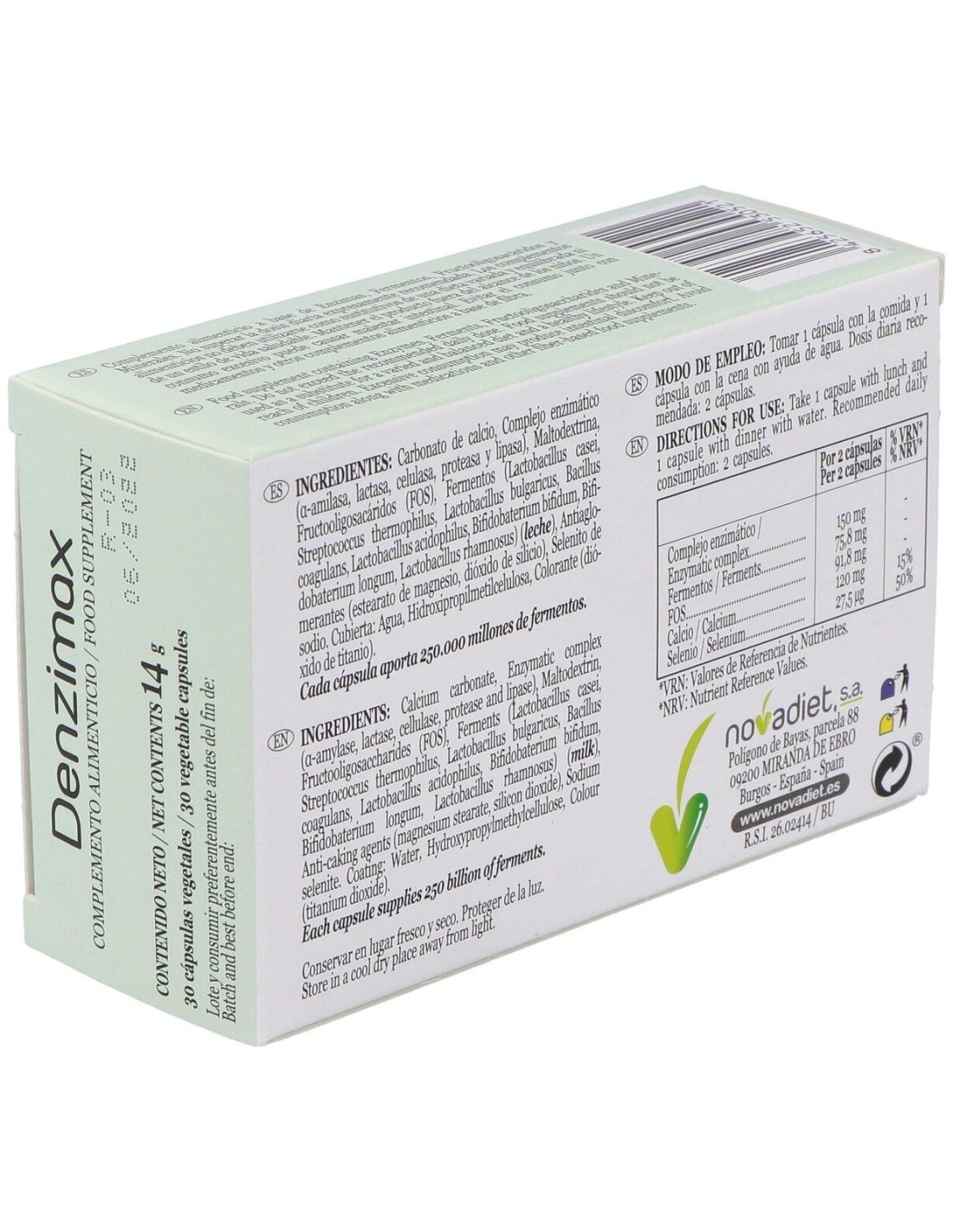 Denzimax Envase de 30 cápsulas vegetales. de Novadiet