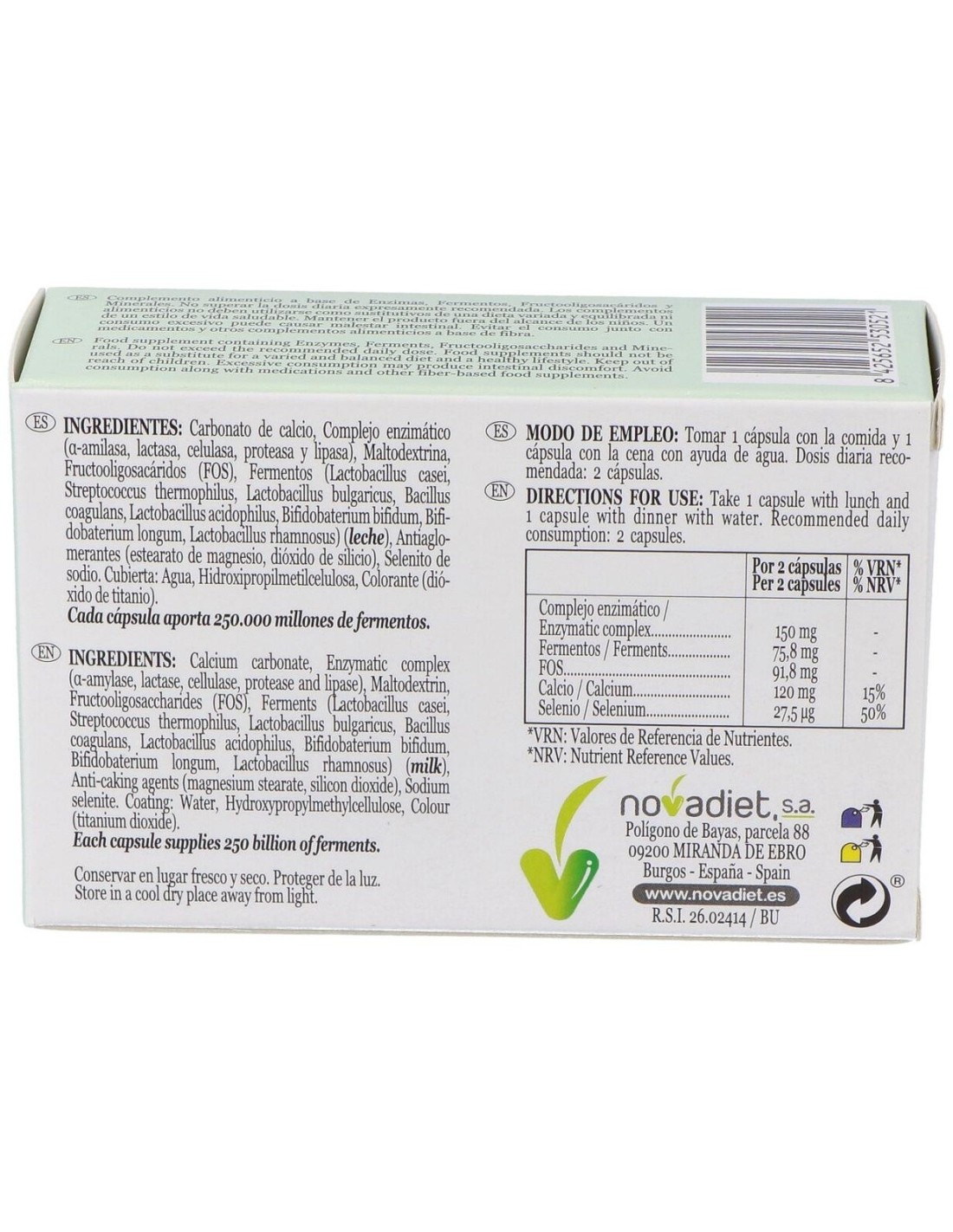 - Cápsulas vegetales que facilitan la digestión y son aptas para dietas vegetarianas y veganas.