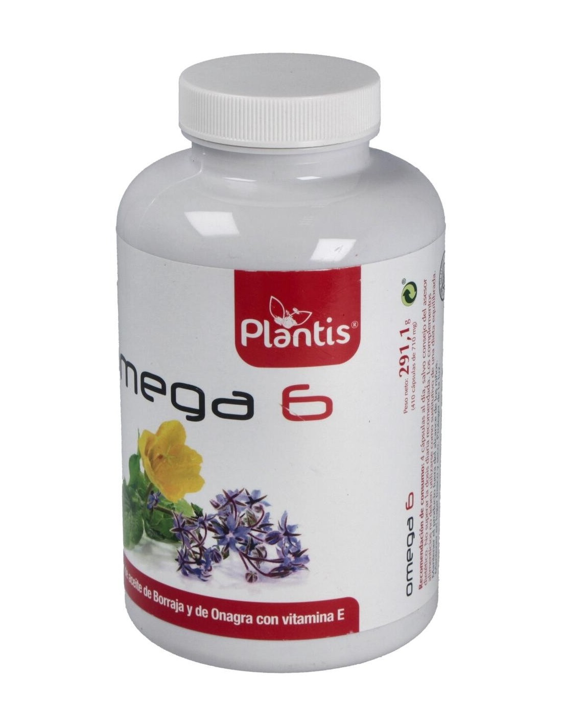 Los aceites Omega 6 de las cápsulas Plantis proceden de la extracción de los aceites grasos de Onagra y Borraja. La riqueza en ácidos grasos poliinsaturados Omega 6 está en forma de ácido linoleico (LA) y ácido gamma-linolénico (GLA).Los ácidos grasos omega-6 rebajan los trigliceridos, disminuyen el colesterol, previenen la formación de coágulos en las arterias al impedir la agregación plaquetaria y disminuyen levemente la presión arterial.A nivel del aparato circulatorio, rebajan los trigliceridos, disminuyen el colesterol, previenen la formación de coágulos en las arterias al impedir la agregación plaquetaria y disminuyen levemente la presión arterial. En general fluidifican la sangre y protegen contra los ataques cardíacos, apoplejías, derrames cerebrales, anginas de pecho, enfermedad de Raynaud, etc.Presentan propiedades antiinflamatorias: Se ha comprobado que tienen propiedades antiinflamatorias en enfermedades de las articulaciones. Los ácidos grasos omega 6 rebajan la inflamación y alivian el dolor en enfermedades como la artritis reumatoide. El GLA puede constituir una alternativa natural al tratamiento convencional de la artritis reumatoide. Parece ser que este componente reduce los niveles de prostaglandinas que son las responsables de muchos procesos inflamatorios.Composición activa por cápsula: