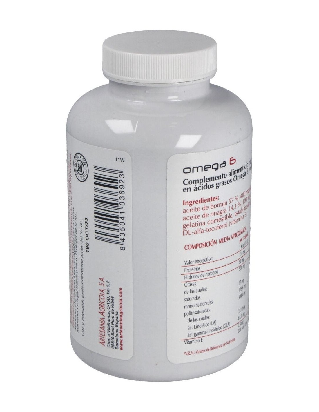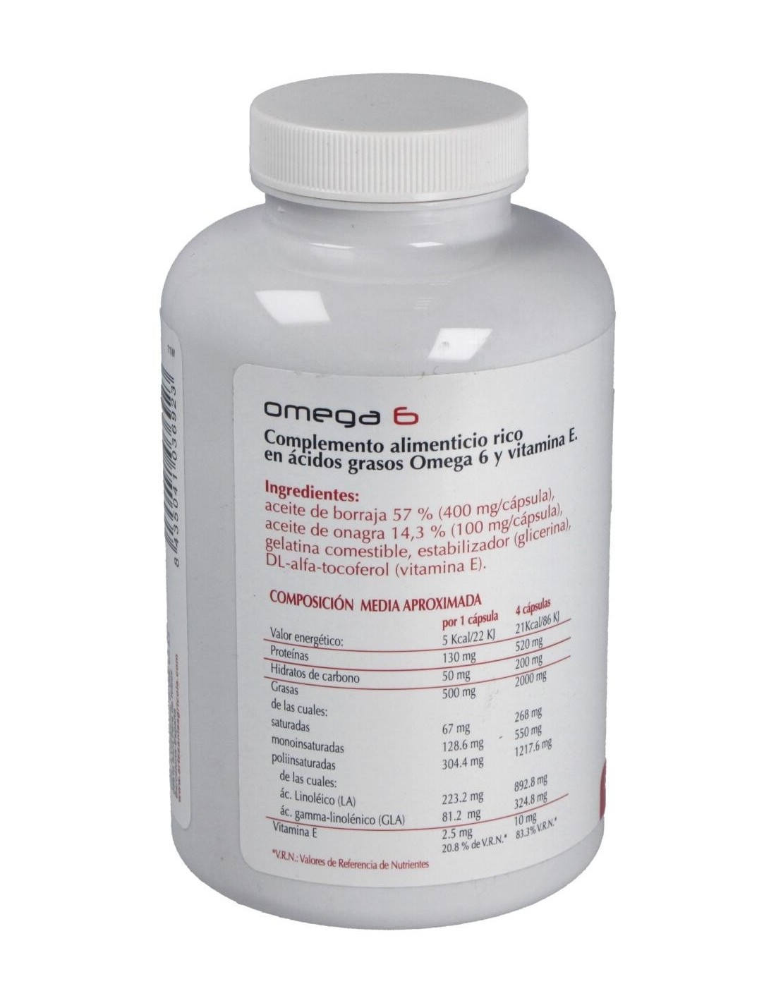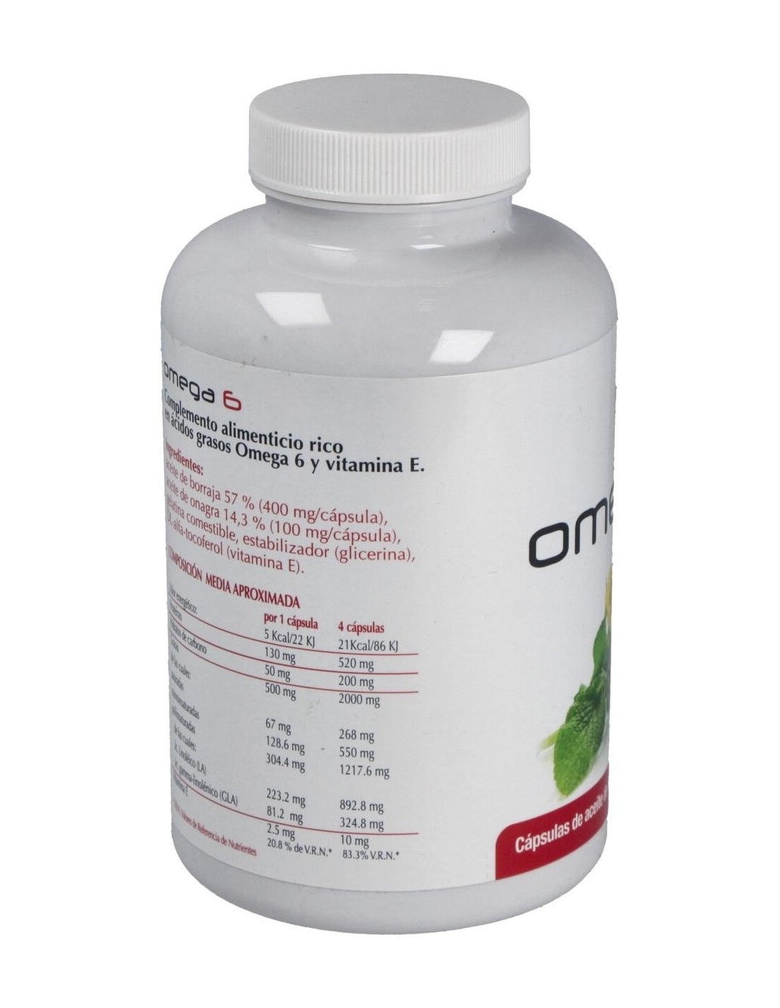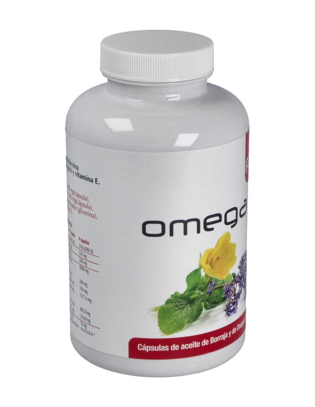 Ingredientes:Aceite de borraja 57 % (400 mg/cápsula), aceite de onagra 14.3% (100 mg/cápsula), gelatina comestible, estabilizador (glicerina), vitamina E.Modo de empleo:Tomar 4 cápsulas al día.Presentación:Envase de 410 cápsulas.