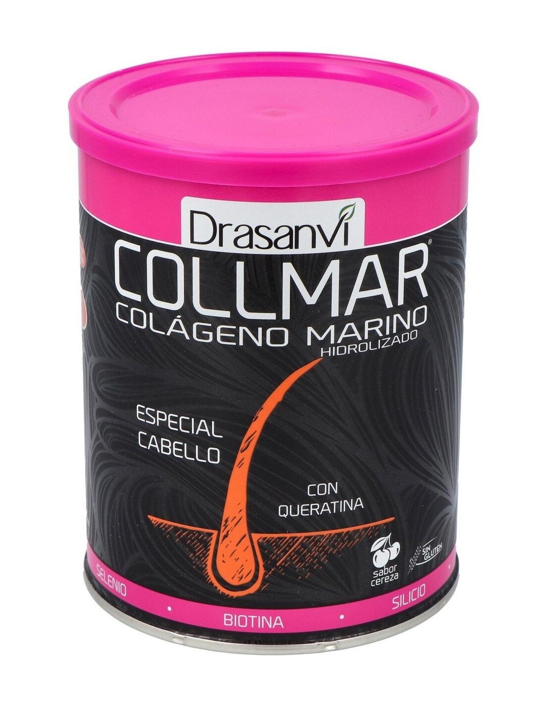 Ingredientes:Cola´geno Marino Hidrolizado Enzima´ticamente (Contiene pescado, Tipo I, muy bajo peso molecular)(5.000 mg), Agente de carga (Maltodextrina), Queratina (250 mg), Aroma (Aroma de cereza), Gluconato de Zinc (Zinc 14,36%)(75 mg), Extracto seco de Bambu´ (Tallo) (Bambousa arundinacea (Retz.) Willd., Silicio 75%)(40 mg), Edulcorante (Sucralosa), Selenito so´dico (Selenio 46%)(0,12 mg), Biotina (D-biotina)(100 mcg).Modo de empleo:Tomar 10 gramos (2 cacitos dosificadores) al día durante un tiempo mínimo de 3 meses continuados. Presentación:Envase de 350 gramos sabor cereza.Recomendaciones y advertencias:No contiene gluten.