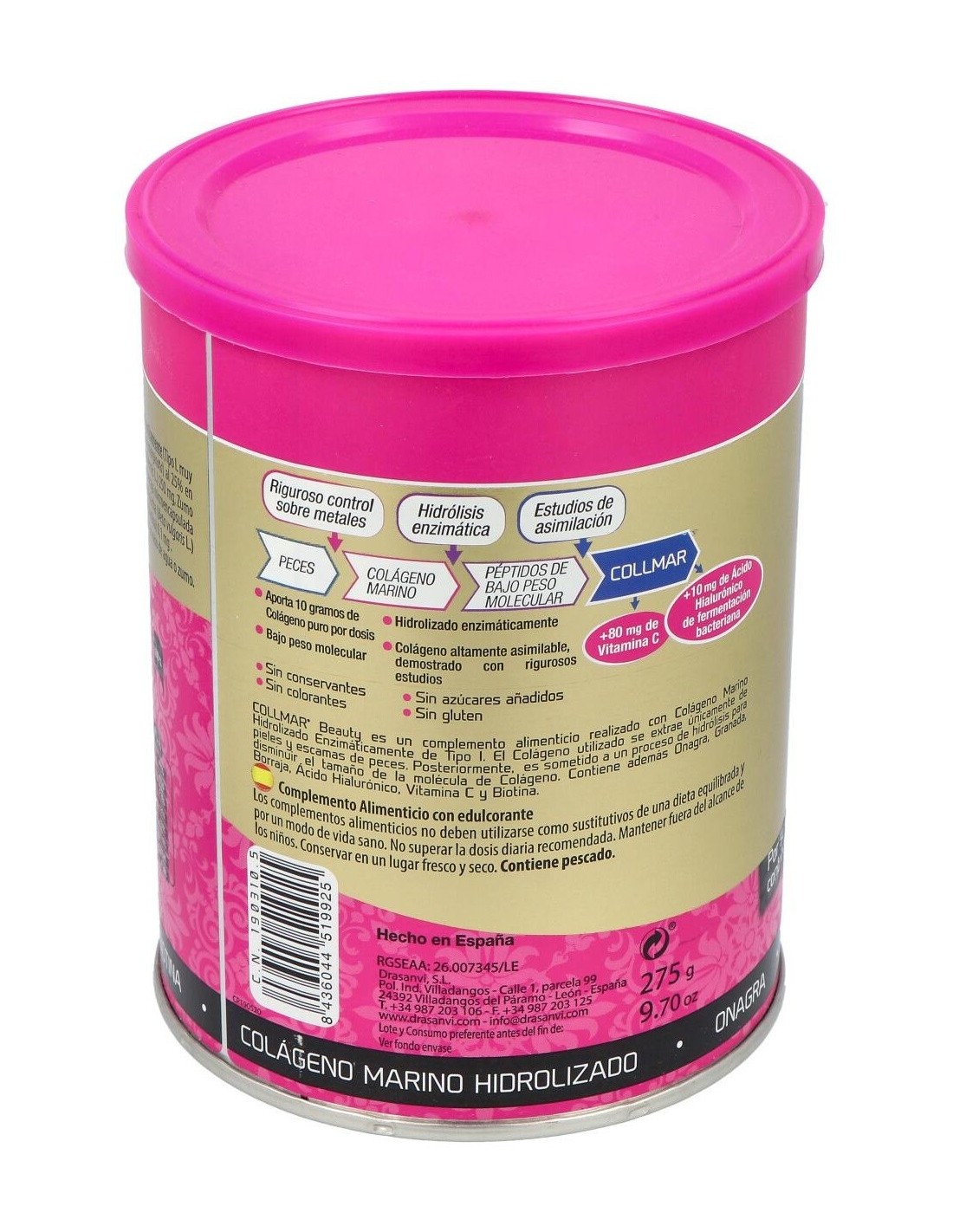 9.062 mg de colágeno marino hidrolizado (tipo I).